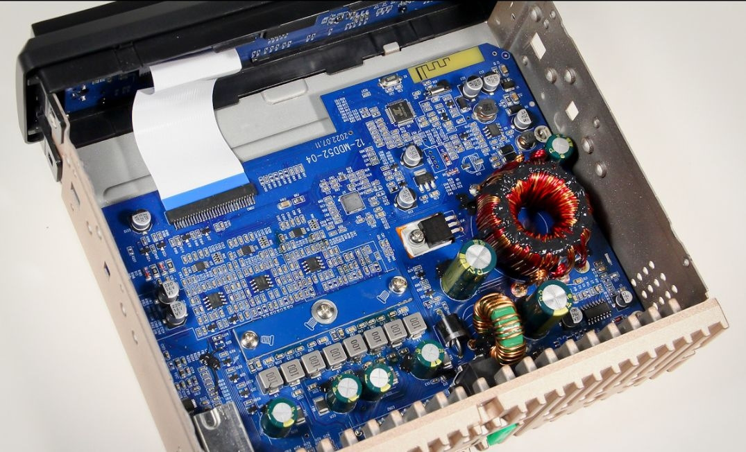 Основным элементом процессорных магнитол является звуковой процессор DSP, который находится внутри устройства. Звуковой процессор предоставляет дополнительные возможности для расширенной настройки аудиосцены в автомобиле. В частности, в процессорных магнитолах есть функционал для разделения звуковых каналов, настройки эквалайзера, а также выставления временных задержек. Для искушенного меломана, коим я еще не являюсь, последнее крайне важно, так как временные задержки напрямую влияют на качество воспроизводимого звука. Размер трансформатора усилителя относительно крупный!