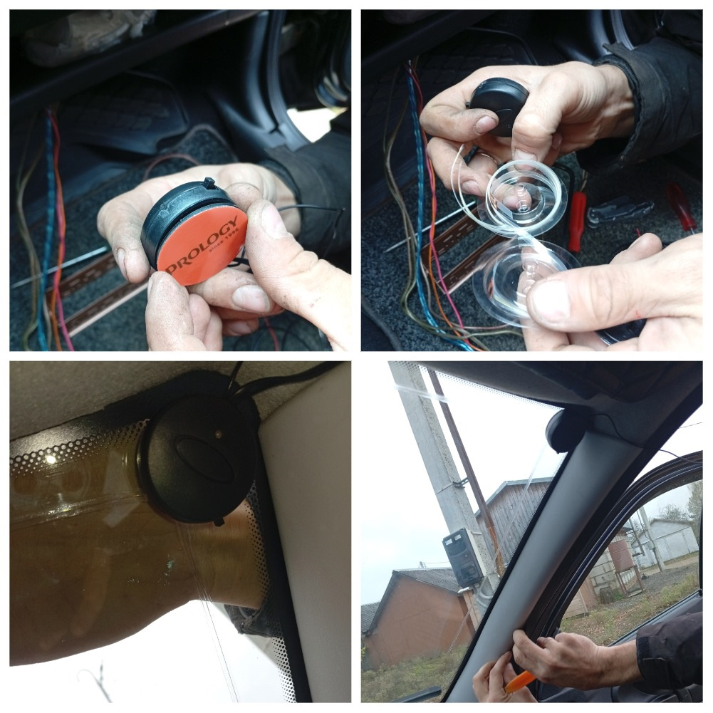 Она устанавливается внутри салона на ветровое стекло автомобиля, место приклеивания предварительно обезжирено.