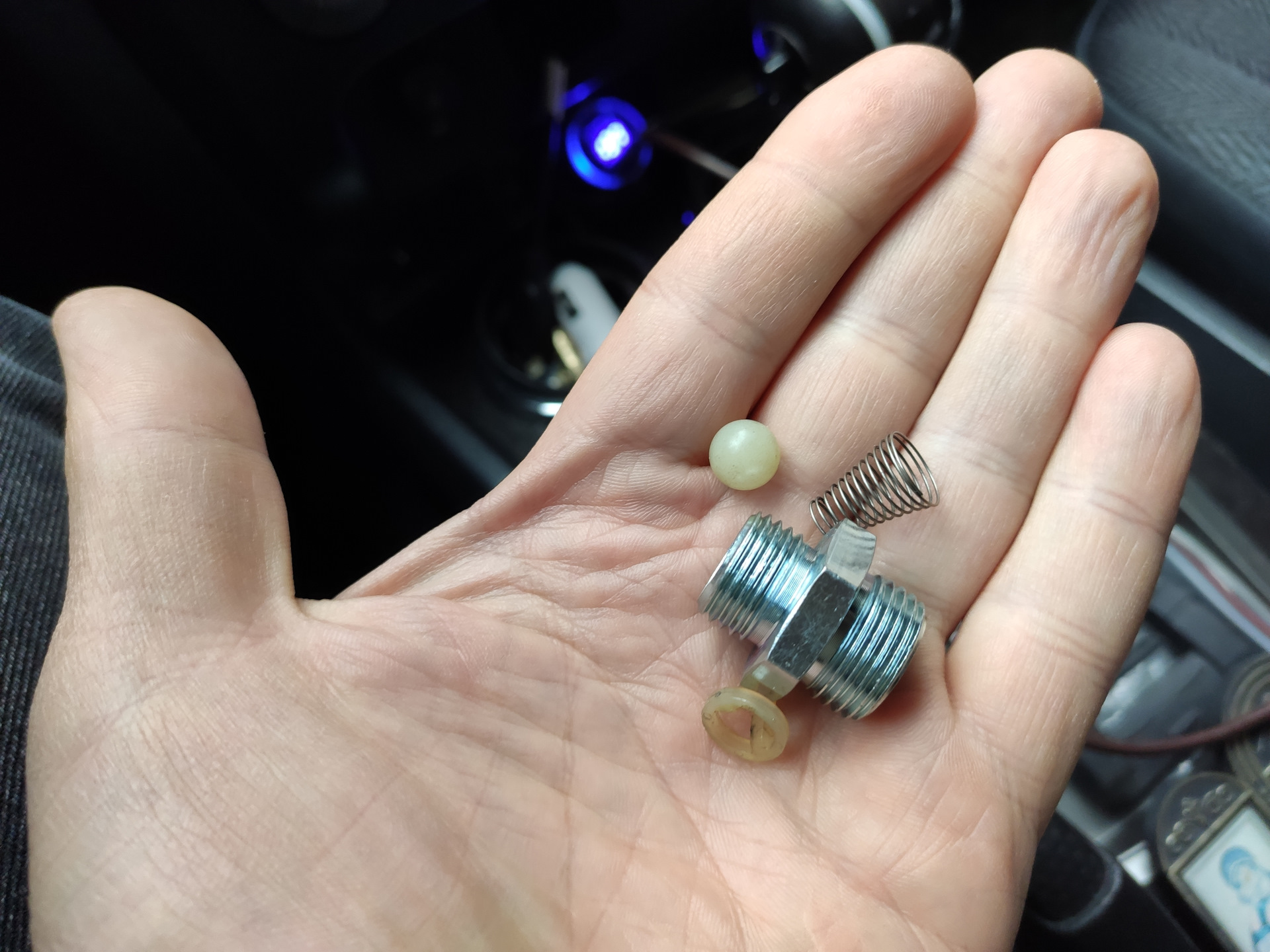 Все отмыл, отчистил, хотел собрать все обратно, так как сам шарик гладкий, без царапин, но засунуть его обратно оказалось совсем не просто. Плюнул и купил другой, с тем же принципом, но клапан стоит в виде картриджа внутри втулки, можно разбирать, чистить и обратно собирать, а уже потом ставить на автомобиль.