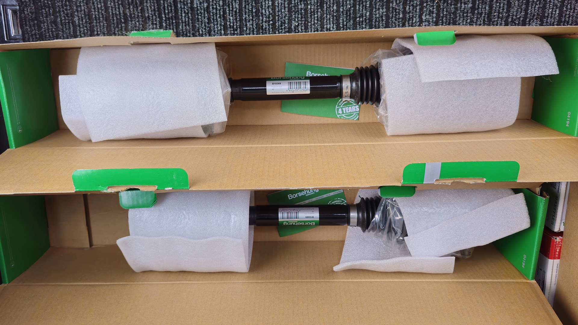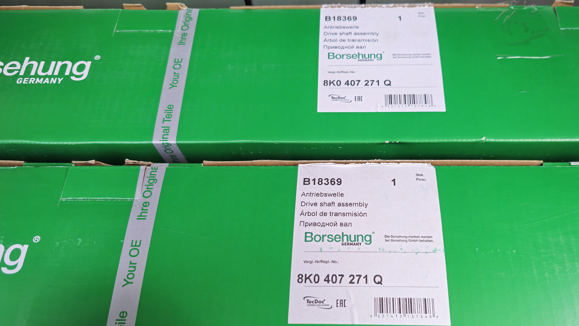 Были куплены новые в сборе фирмы Borsehung. Уж не знаю имеют ли они какое-то отношение к оригиналу или нет, но, сравнивая старые и новые, отличий не видно вообще. Даже по весу одно и тоже. Пыльники такие же "пластиковые" GKN, запиленные номера там-сям. Выглядят очень добротно. По сети ходят слухи, что в этих коробках лежит именно оригинал в части приводов на наши авто. Верить или нет — не знаю, но о покупке не жалею. Все встало четко. езжу на них уже пару месяцев — все идеально.