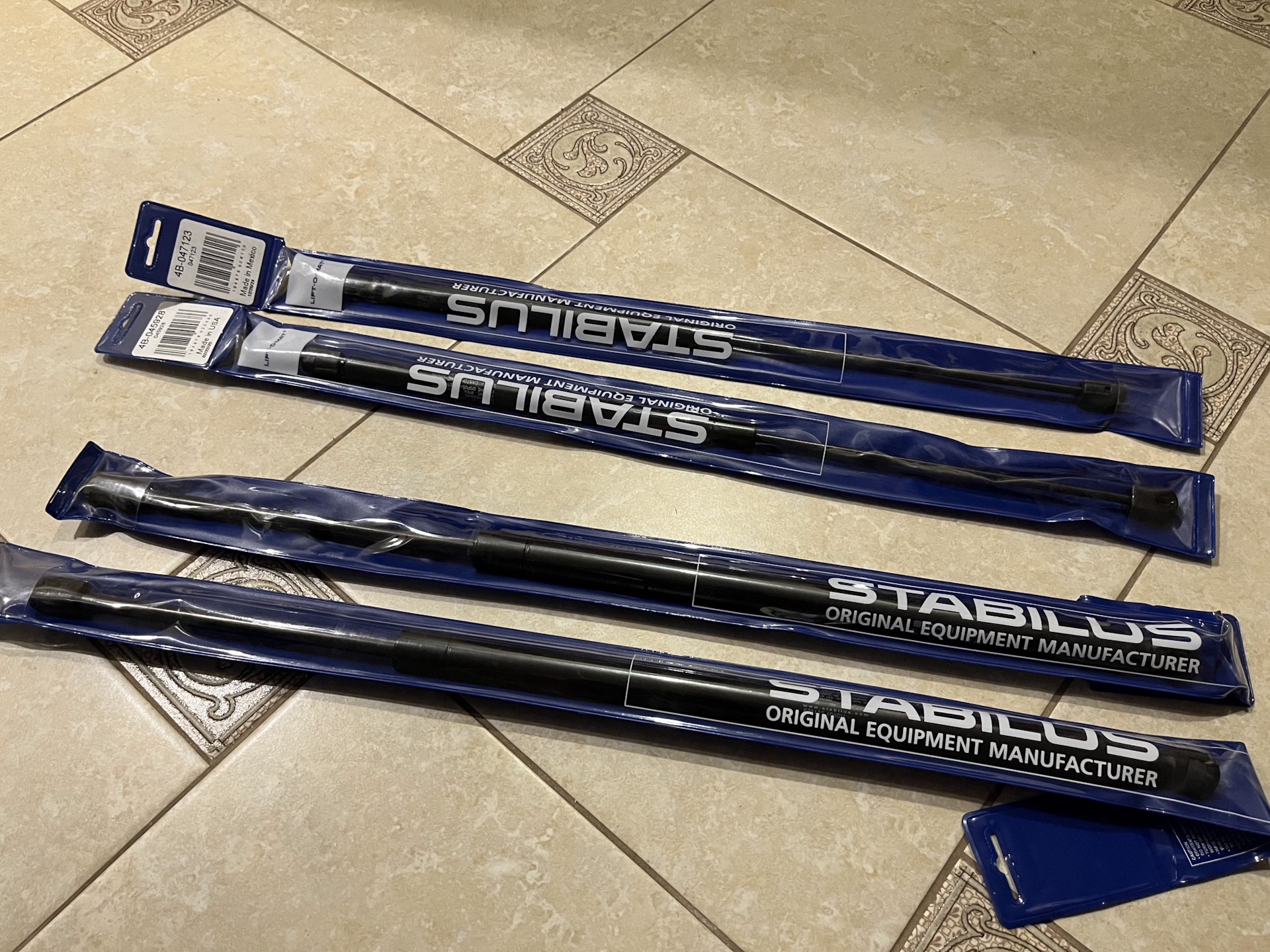 В награду за это он получил новые газовые упоры на крышку багажника и на стекло: старые перестали держать багажник как только термометр переставал показывать жару на улице, а те что держат стекло скрипели-пищали каждое открытие. Заодно их и обкатали на погрузке вещей.