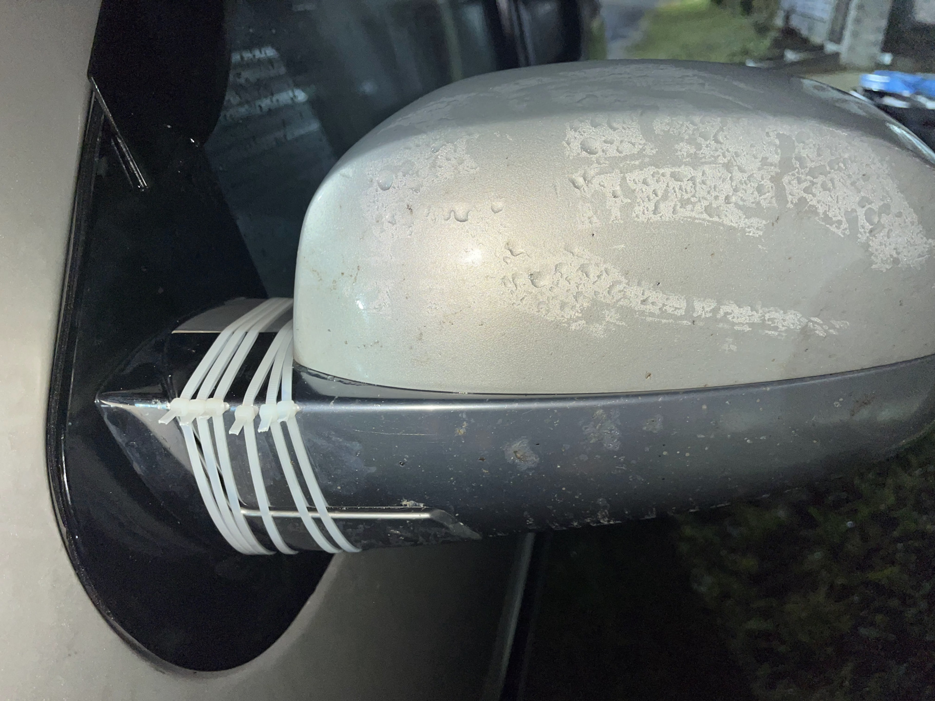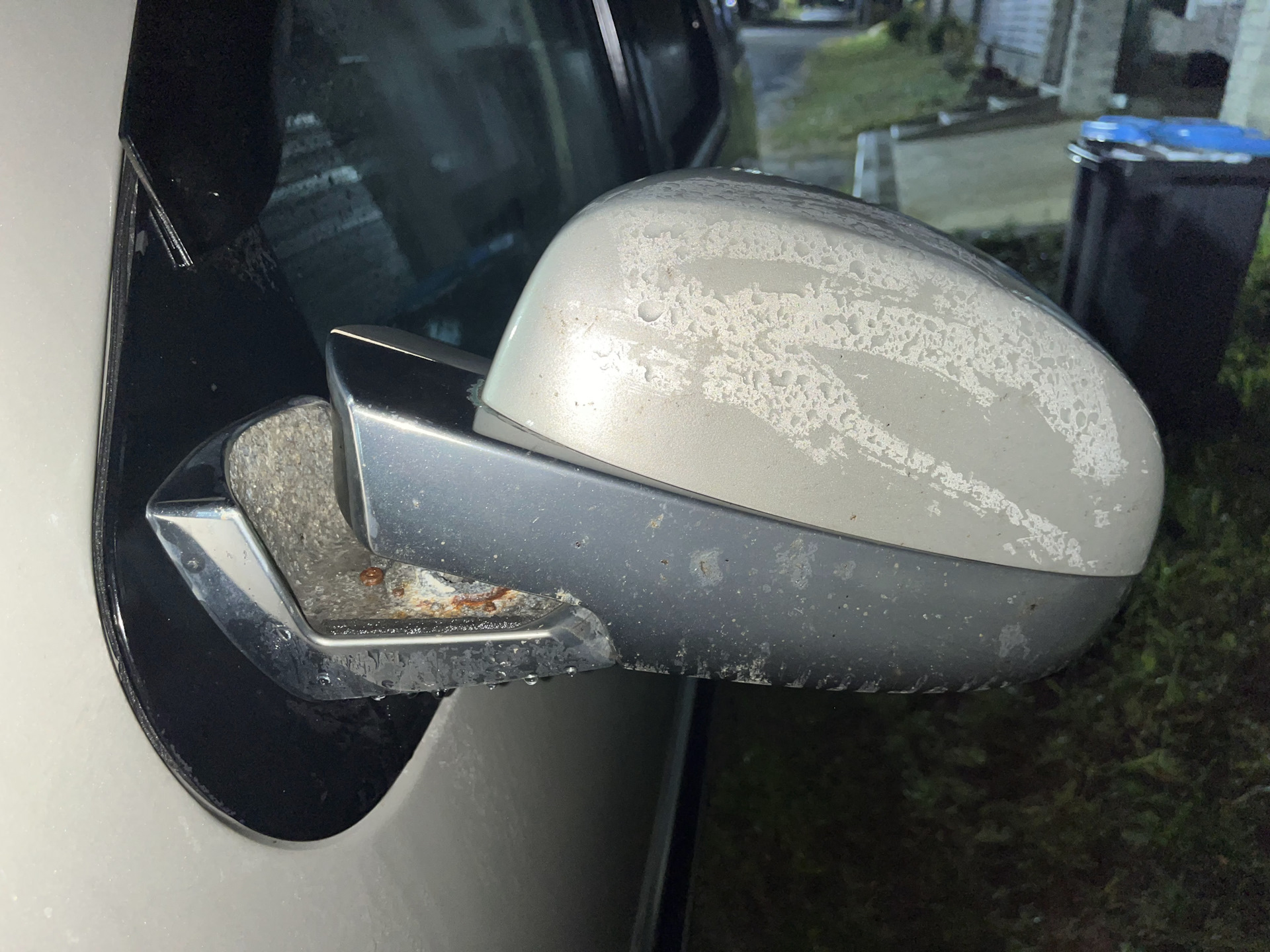 Эта проблема никак не связана с тем ездит машина или нет, к сожалению. Силуминовая напасть догнала и мою машину. Одним днем я увидел свое зеркало вот в таком состоянии.