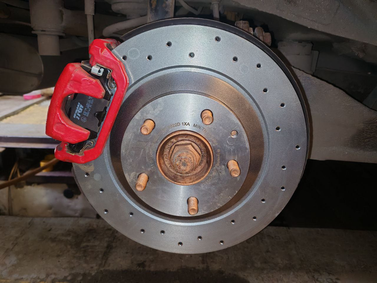 Диски выбрал под стиль передним: просто с перфорацией, передние у меня вот такие от сх-9