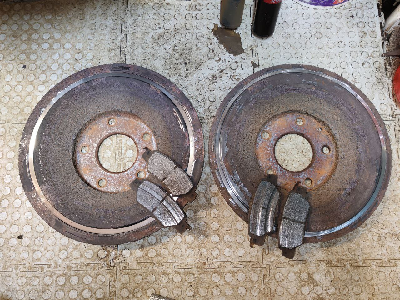 Давно заметил, что задние диски устали (ещё родные), очередные колодки уже подошли, решли заменить.