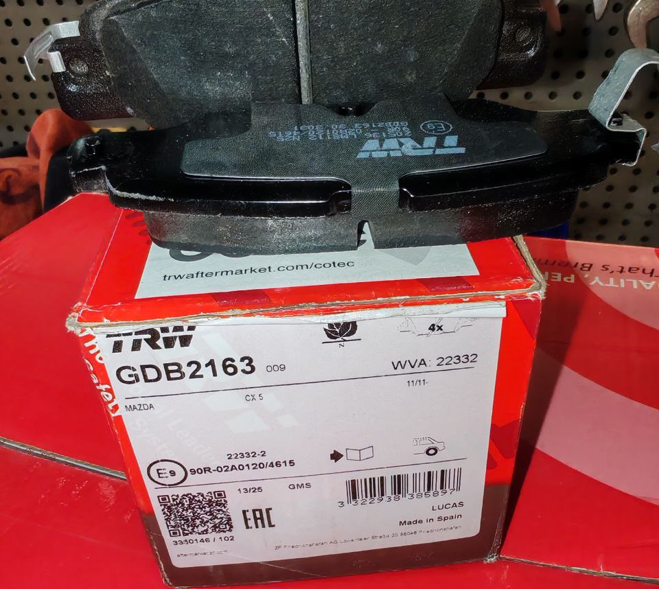 — Колодки: GDB 2163 TRW (на электронный ручник, беру уже третий раз, доволен)