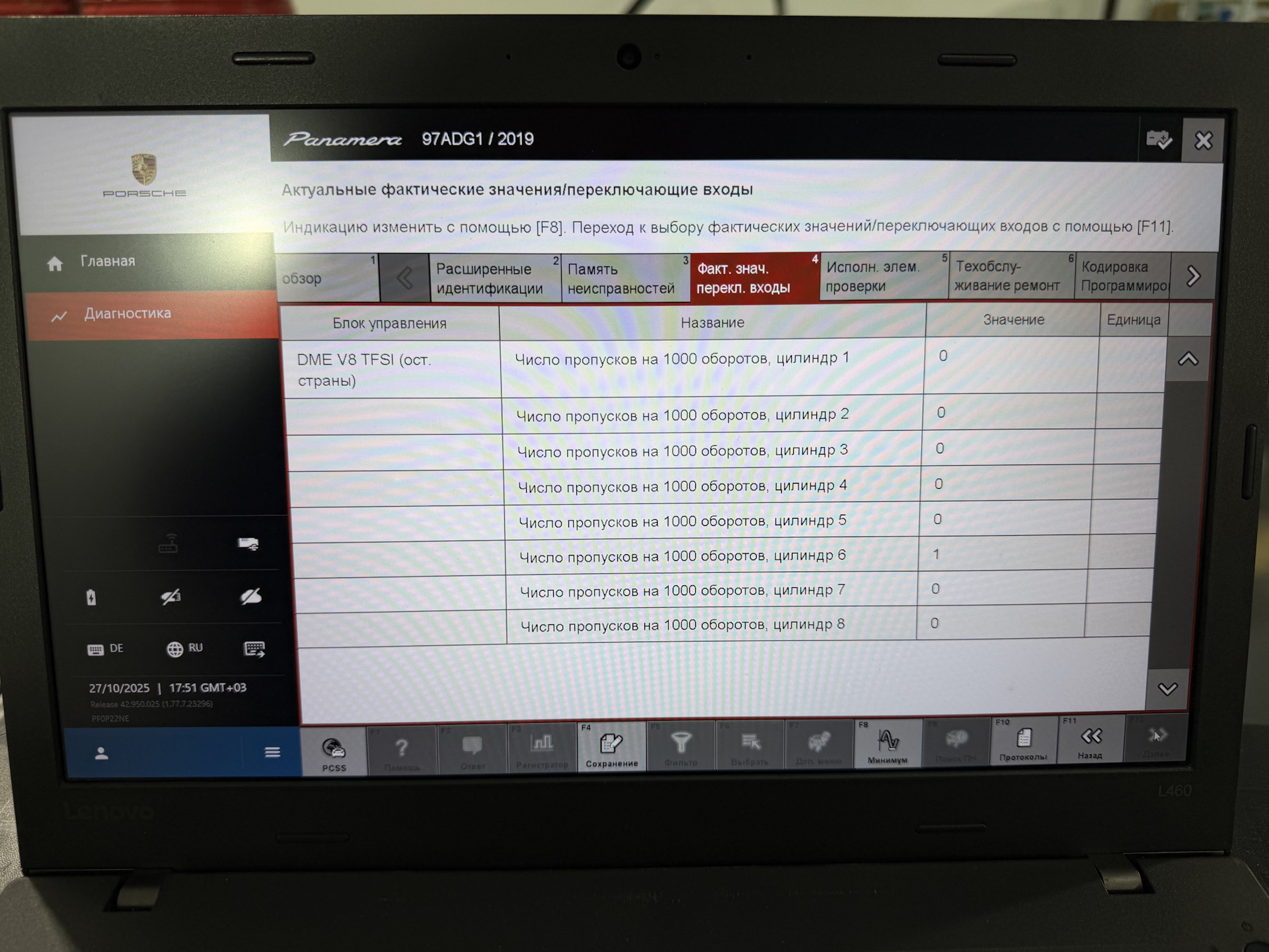 Почитали двигатель и увидели ошибки в 6 и 7 цилиндрах. Сбросили ошибку и решили посмотреть на работу на заведенной машине. Ждали, даже газовали, и ничего: