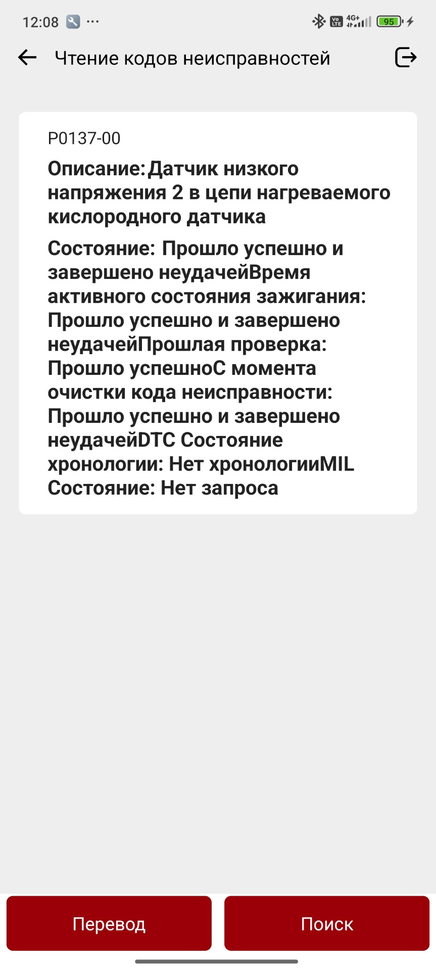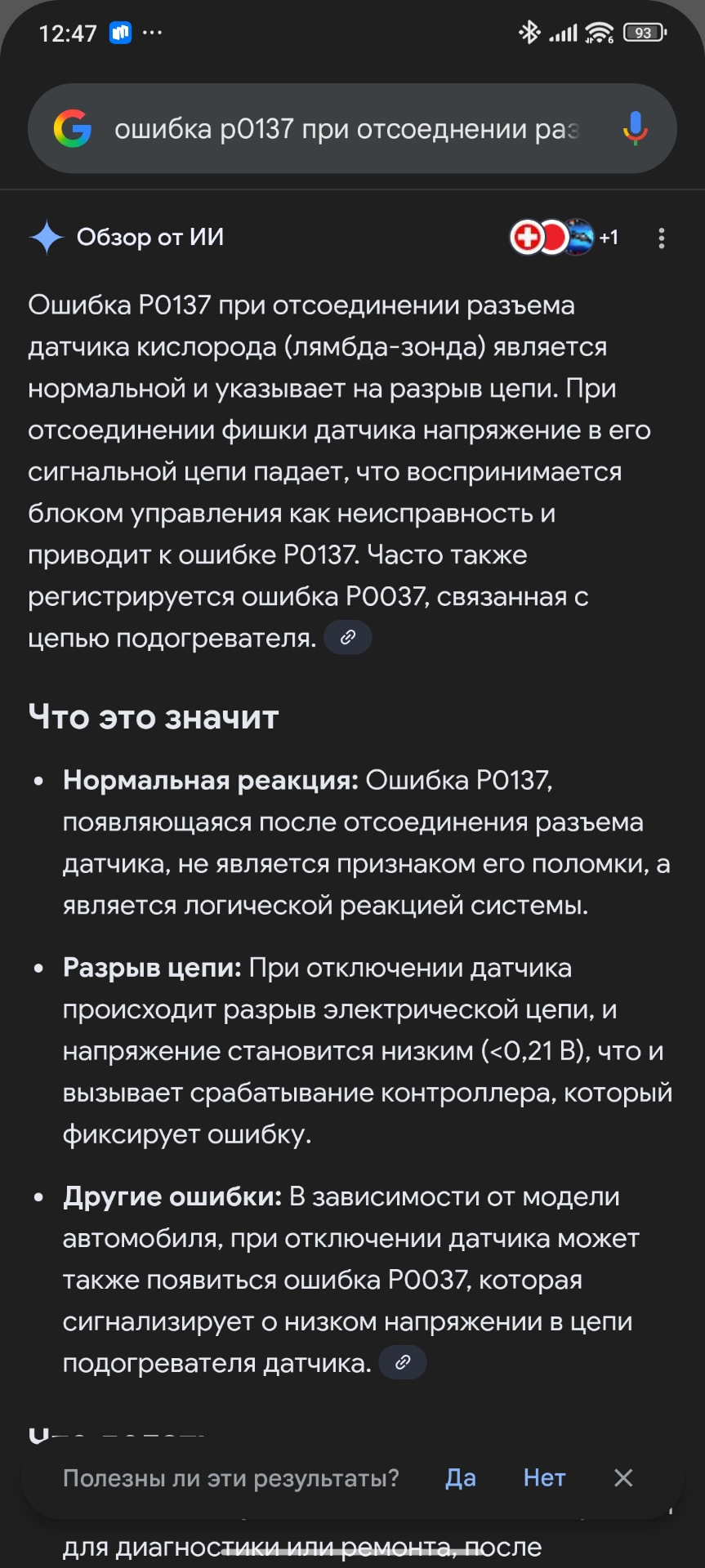 После замены отобразилась ошибка p0137 по лямде, вычитал что при разрыве цепи это нормально, очистил ошибку
