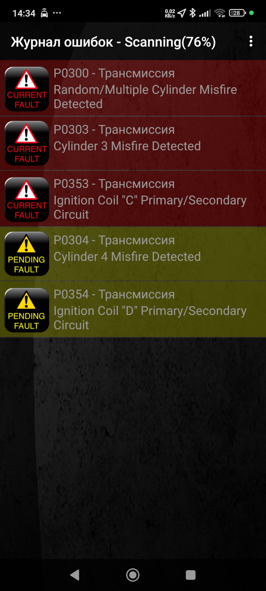 Много фоток, мало букв. Начал подтраивать мотор сначала на холодную, но через пару дней и на горячую. Подключаю китай — читалку ошибок и вижу пропуски в 3 цилиндре. Недолго думая, меняю катушки 3 и 4 горшка местами и сразу вижу ошибку уже по 4 цилиндру