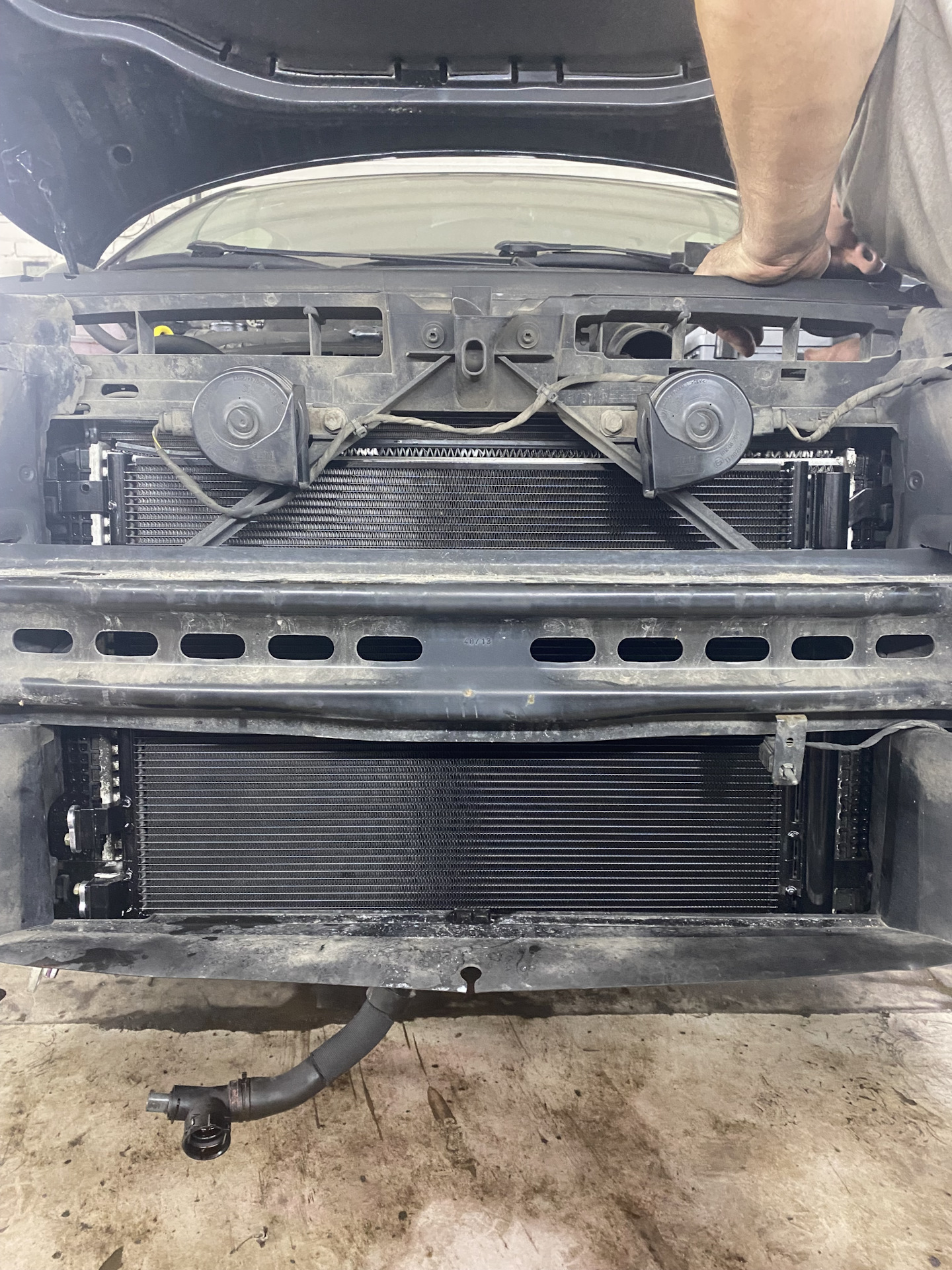Мойка замена радиаторов прошла успешно, новый радиатор кондиционера nrf 35968 (прокладки в комплекте) наконец-то занял своё место, новый радиатор охлаждения 5WA121251H так же установлен, а интеркулер отмыт на мойке самообслуживания.
