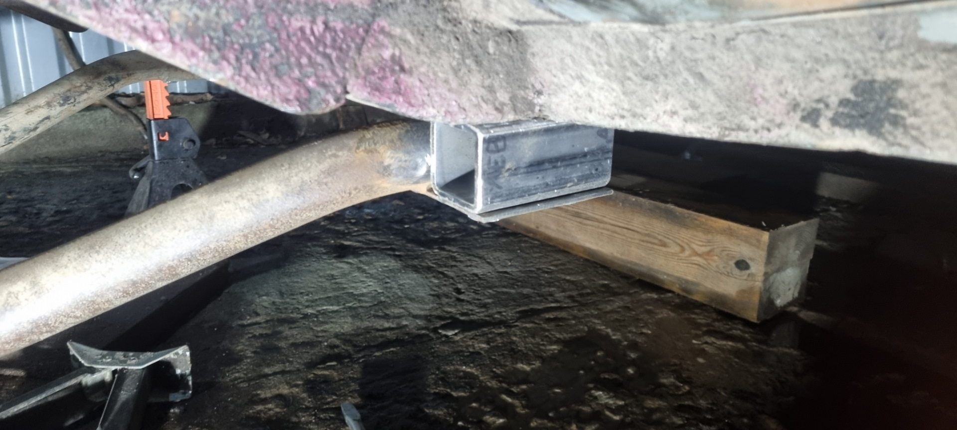 Закрепил проставки средней части на лонжеронах на штатные места.