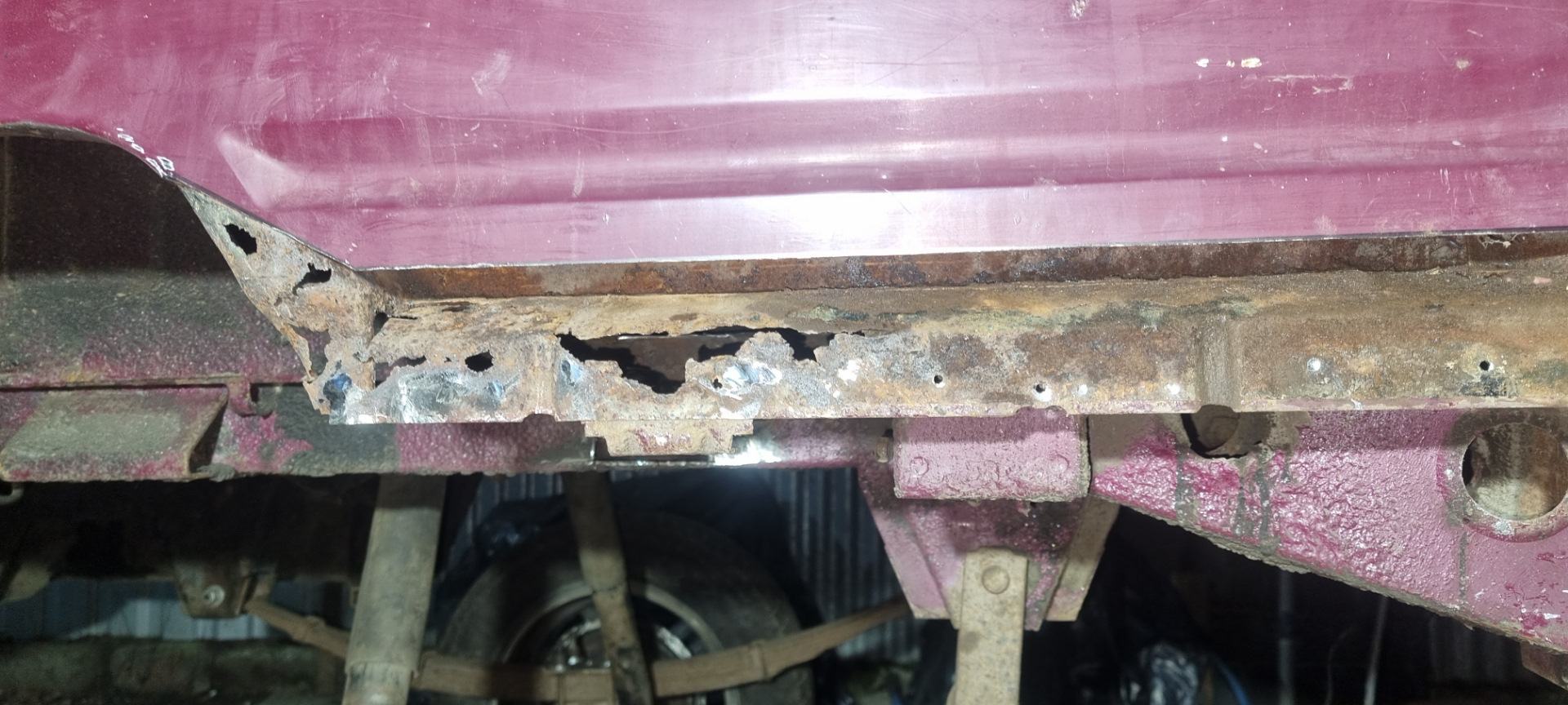 На этот раз примерил подрамник, оторвал его от кузова на 50мм.
