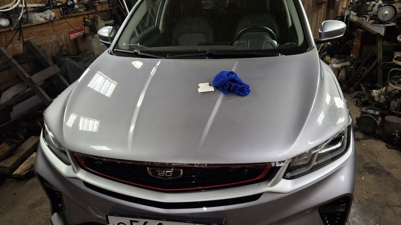 А крыша да — вроде все просто, кроме как выполнения этого канта под лобовое стекло. Нужно со стремянки делать, чтобы в центре нормально уложить. Часа 2 ушло на крышу (больше, чем на капот).