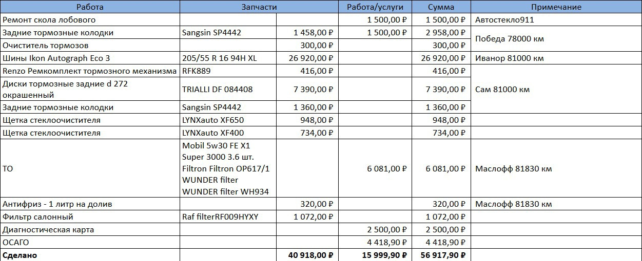 Из неприятного только возня с задними колодками, или их криво поставили, или дискам было слишком плохо. В итоге через 3 тысячи км скрипов и хрустов перебрал тормоза сам.