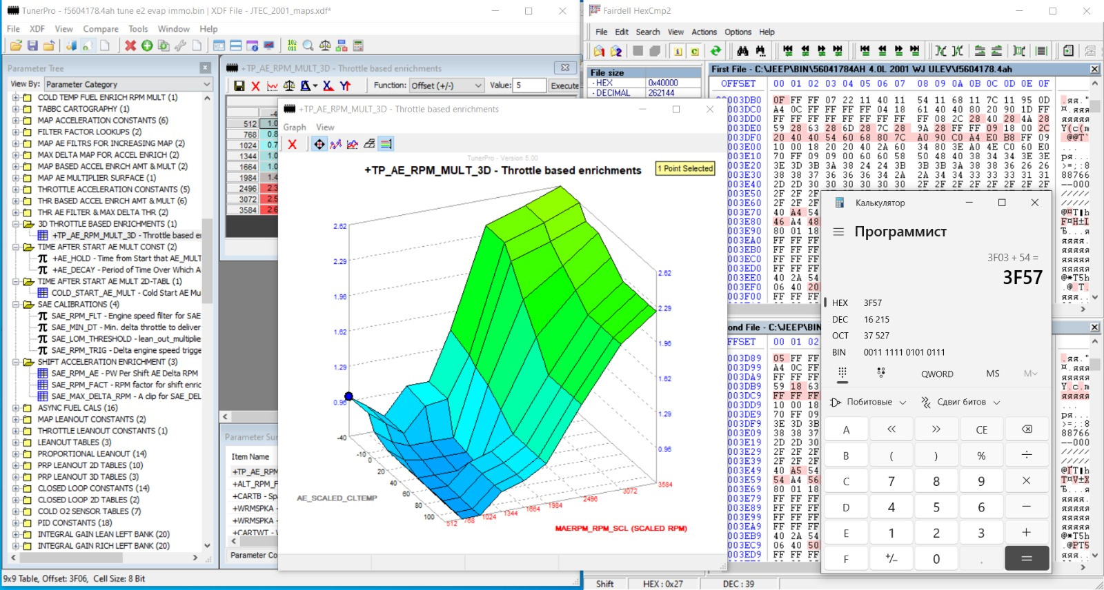 Правильность выбранного пути подтвердилась, когда я начал разбирать прошивку 2001 года — там инженеры Крайслера сгладили все таблицы, что не может не радовать.