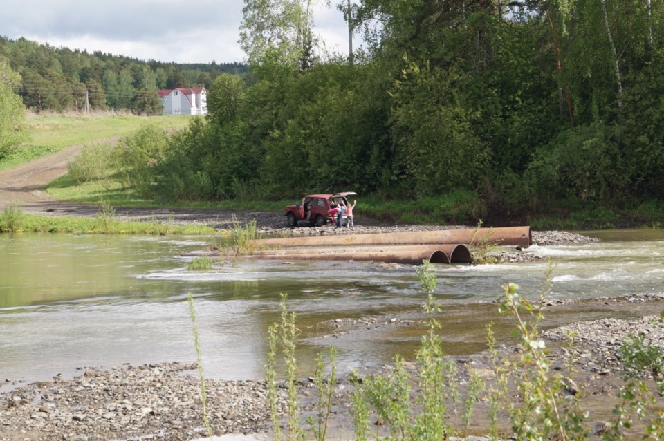 Приехали в Новососедово-а моста то нет. Решено ехать вброд. пока ходим осматриваем подходит местный житель и показывает брод: "Так, так, так и так. Туда не езжай, там ТЛК 200 и трактор утопили, ближе берега держись".