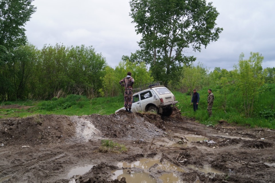 Завожу машину, плывем обратно, не доехав 2 метра глохну снова. на стартере выезжаю на берег, там цепляют и оттягивают на холм… Снова сушка… Погода окончательно испортилась и мы летим домой.