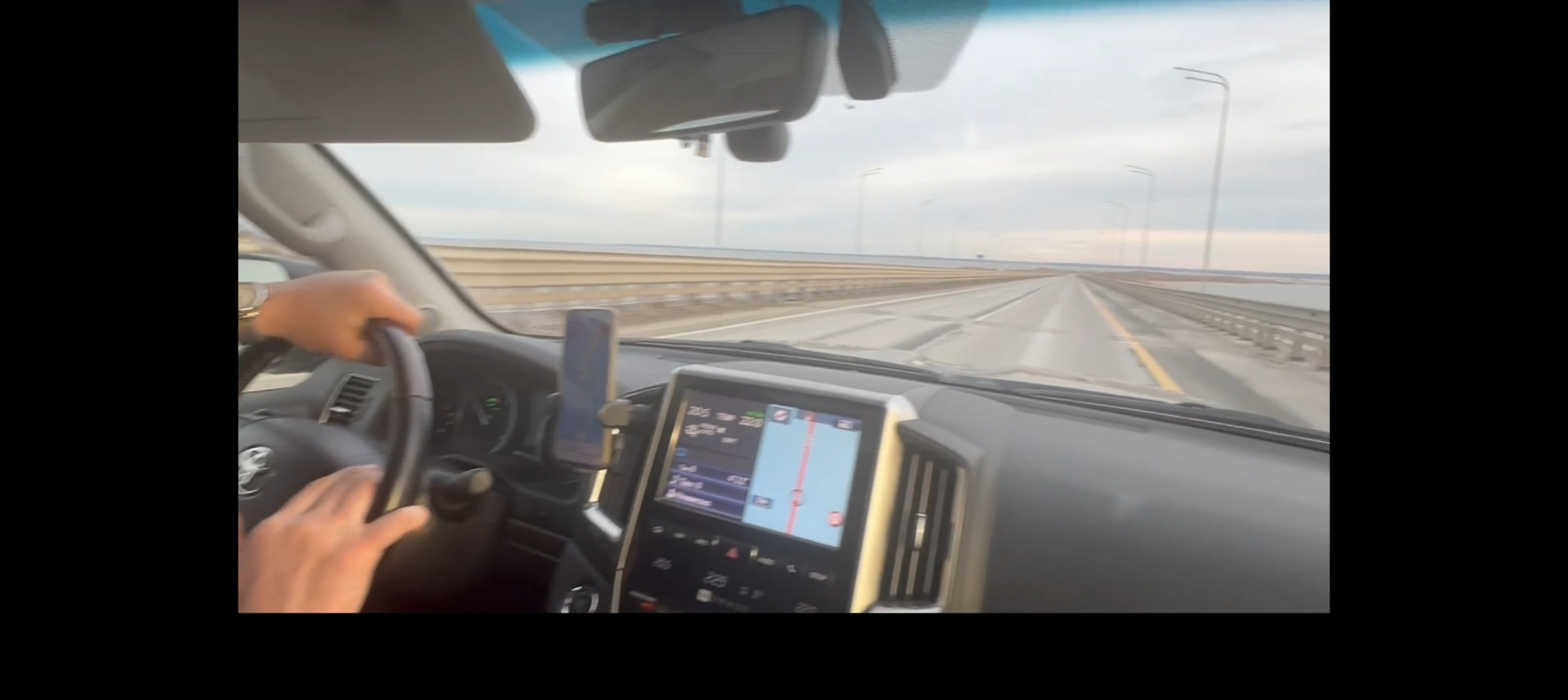 На абсолютно пустой дороге.