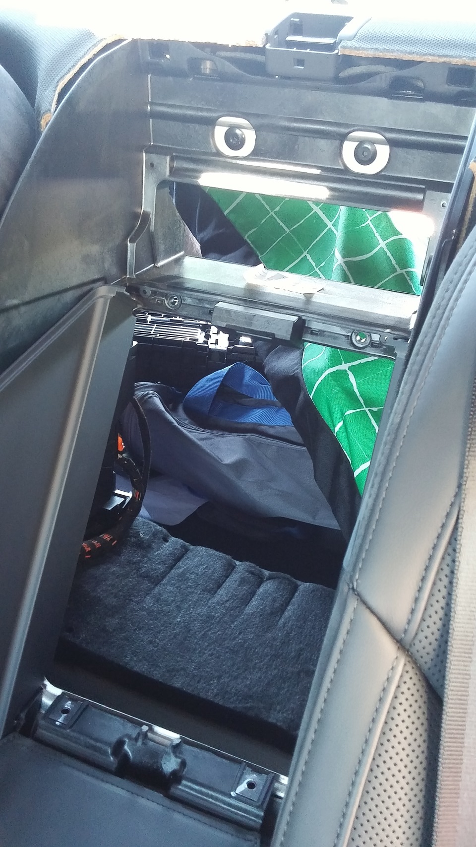 Теперь доска живет в багажнике, а лючок приходится закрывать подлокотником. Думаю чем его и где прошить. Нужно бы закрыть срамоту.
