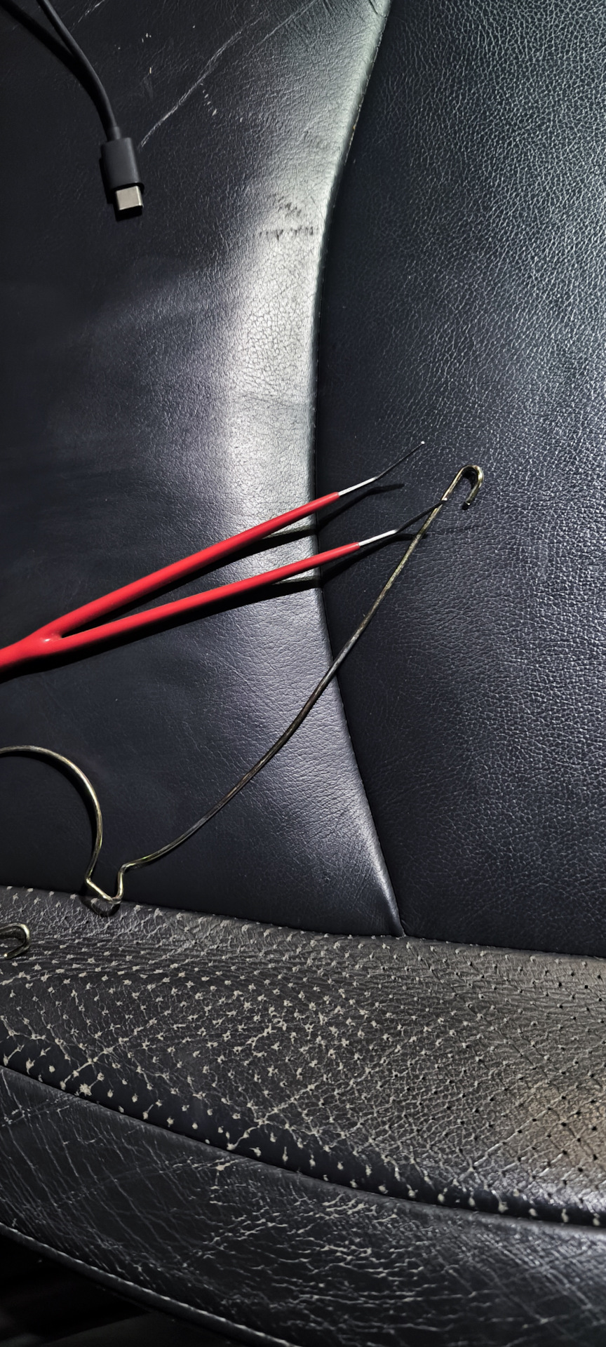 Оказалось, что щипцами делать крайне неудобно, поэтому взял первый попавшийся под руку хомут и разогнул его до простого крючка, а так же взял пинцет.