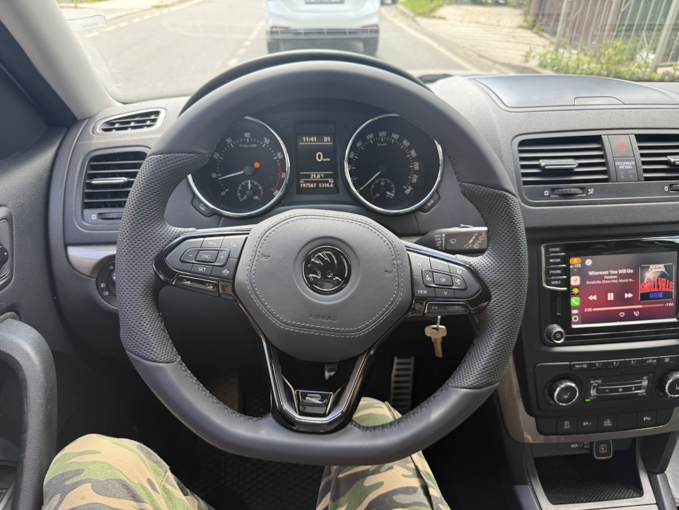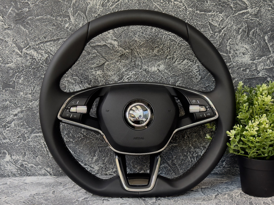 Это руль от октахи а8 (?вроде?), но как я знаю через переходник оно прекрасно встаёт на PQ35 (да и я вживую видел такой руль на одной дорест йети, но там без подогрева и лепестков был)
