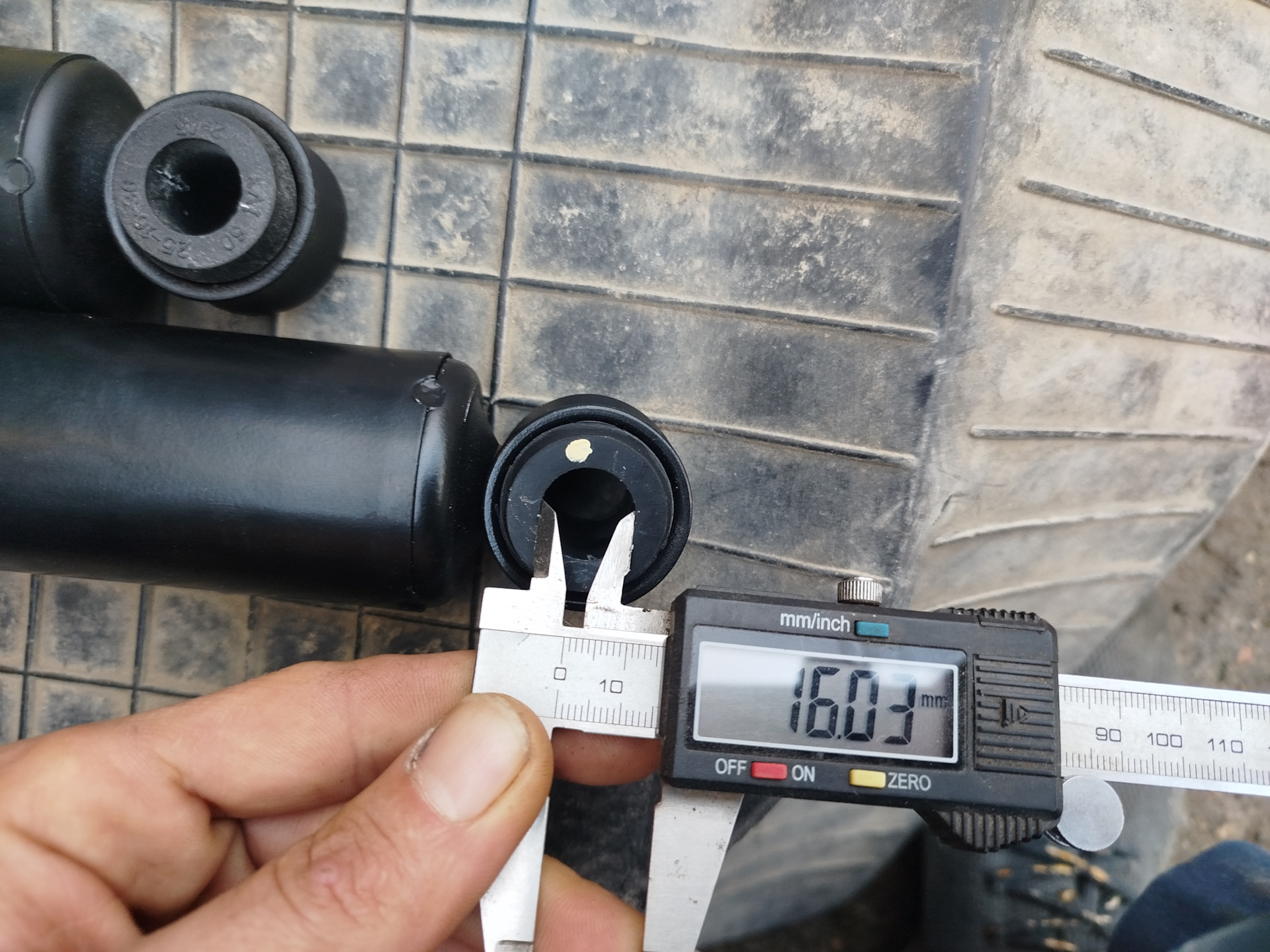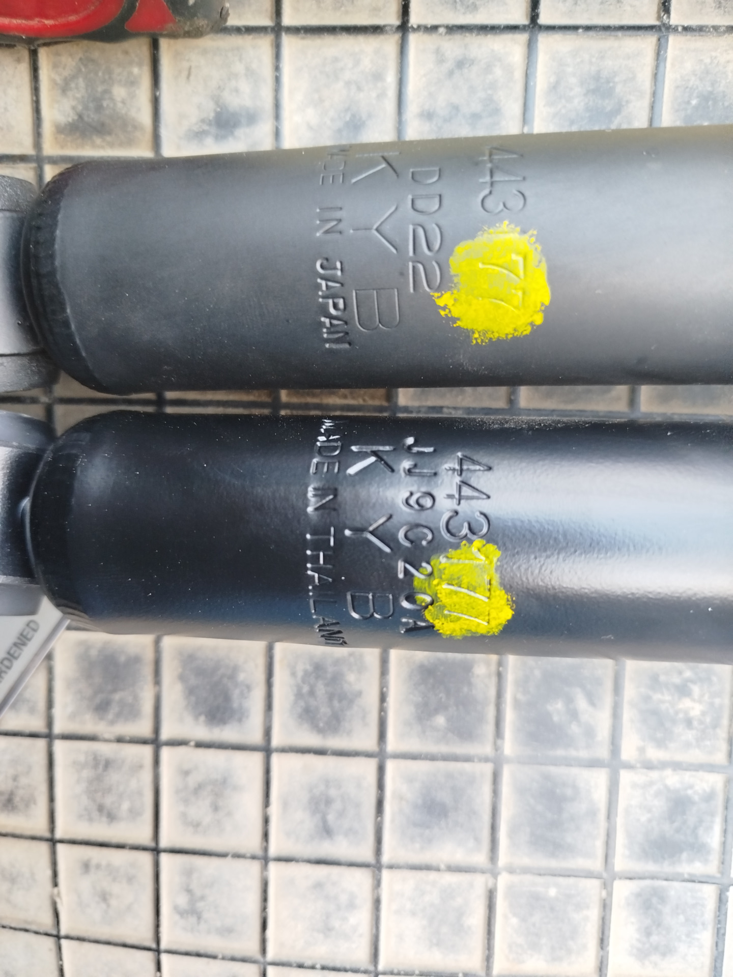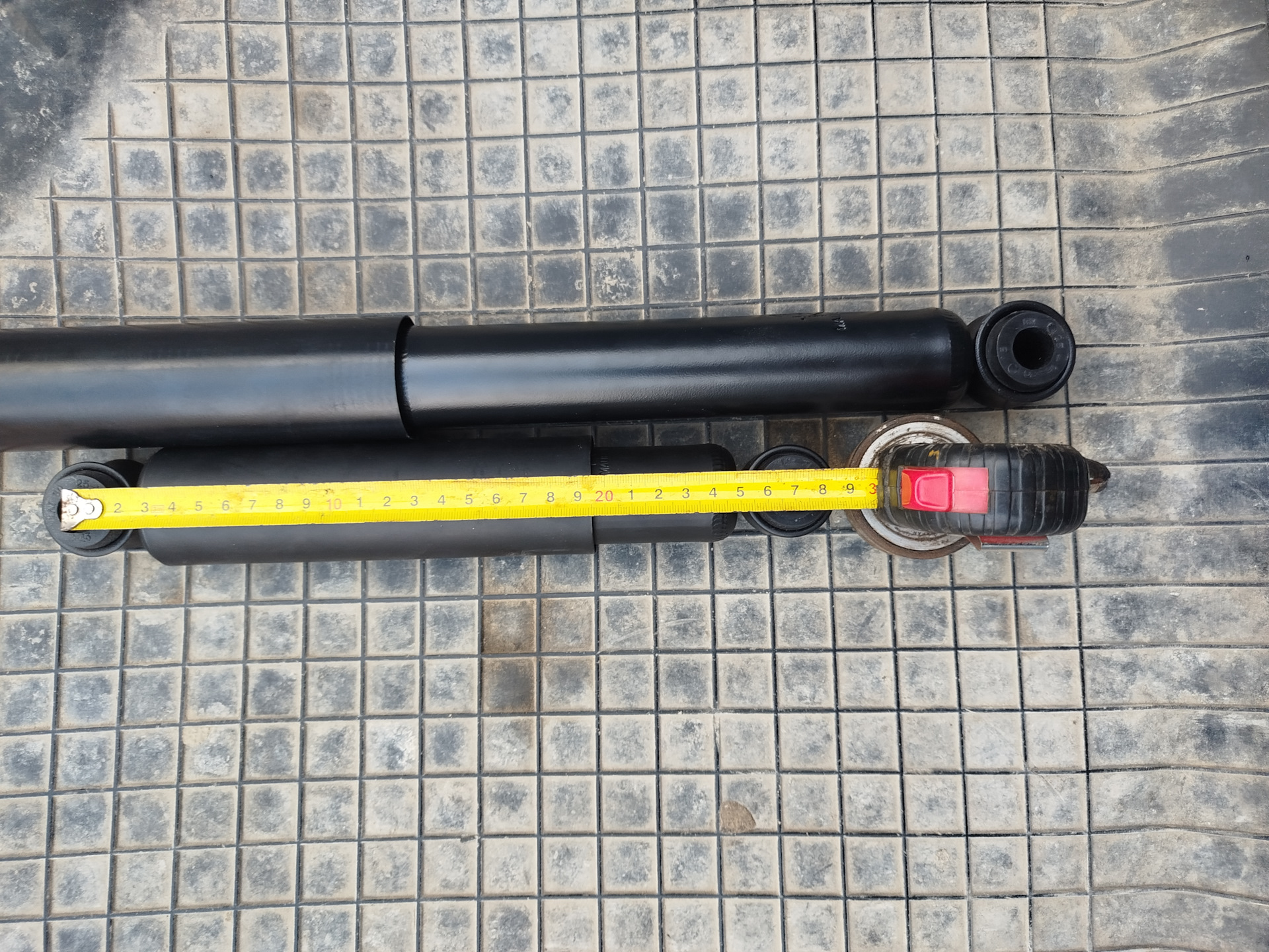Снял задние амортизаторы, подкинул к ним рулетку "а вдруг" и не зря, справа установлен передний амортизатор, а слева какой-то No Name, но с идентичными размерами переднему амортизатору.