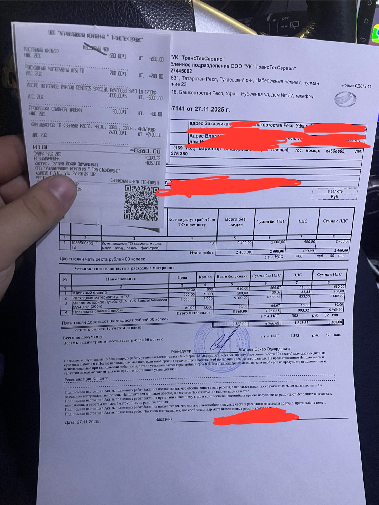 Когда поехал, обнаружил подклинивание переднего левого тормозного суппорта. При встрече обнаружилось, что масло 5/30 закончилось, в качестве альтернативы пришлось выбрать 5/40. Хотя по душе, а особенно в зиму 5/30 или 0/30. Менеджер принял машину, загнал в сервис, на работах присутствовал. Заодно посмотрели ходовку. Вопросы больше к рейке, наконечникам. Левое переднее колесо подклинивает. Задние диски с колодками менять. Предложили сделать дефектовку и составить смету. Выкатили счет: