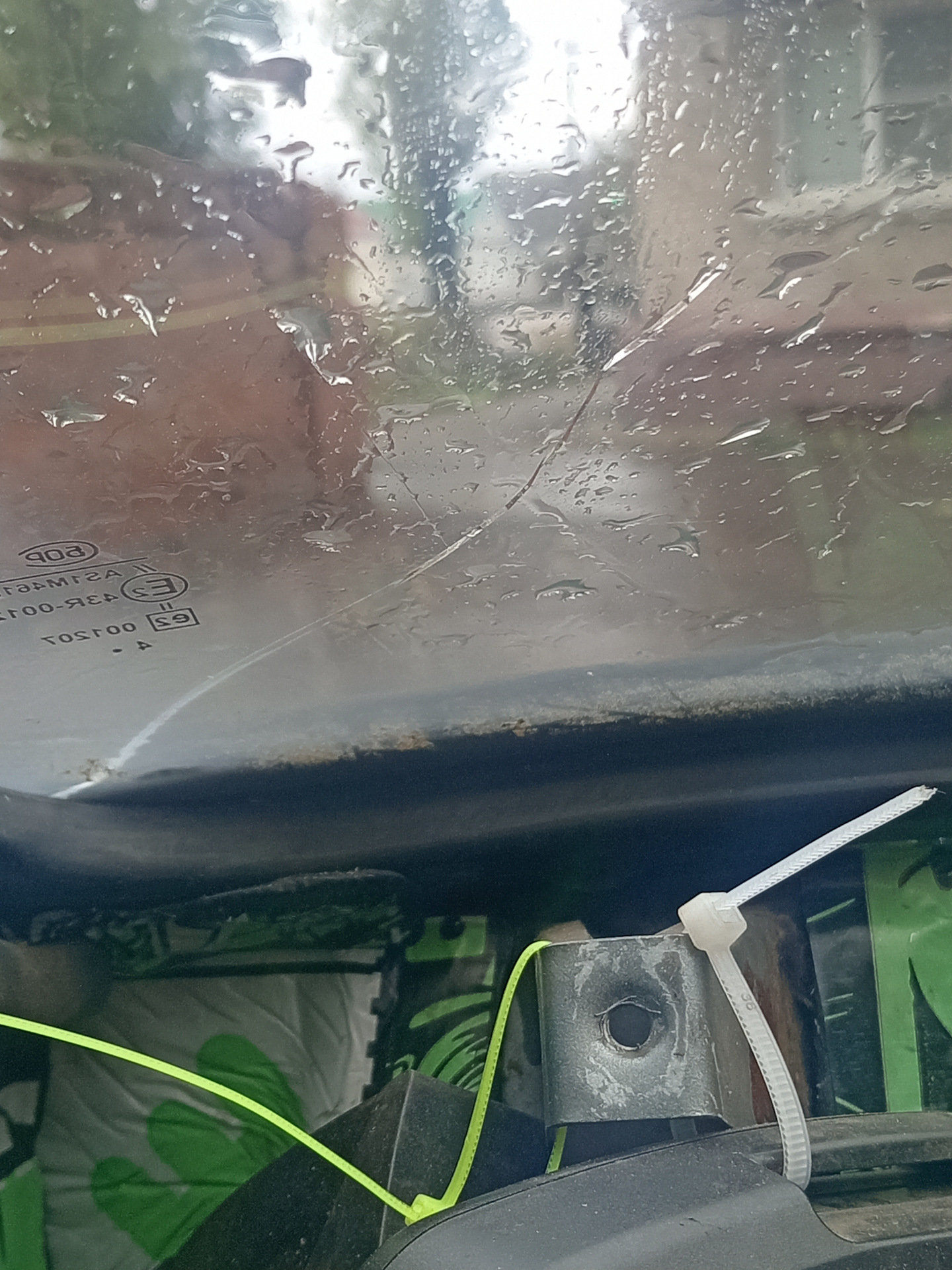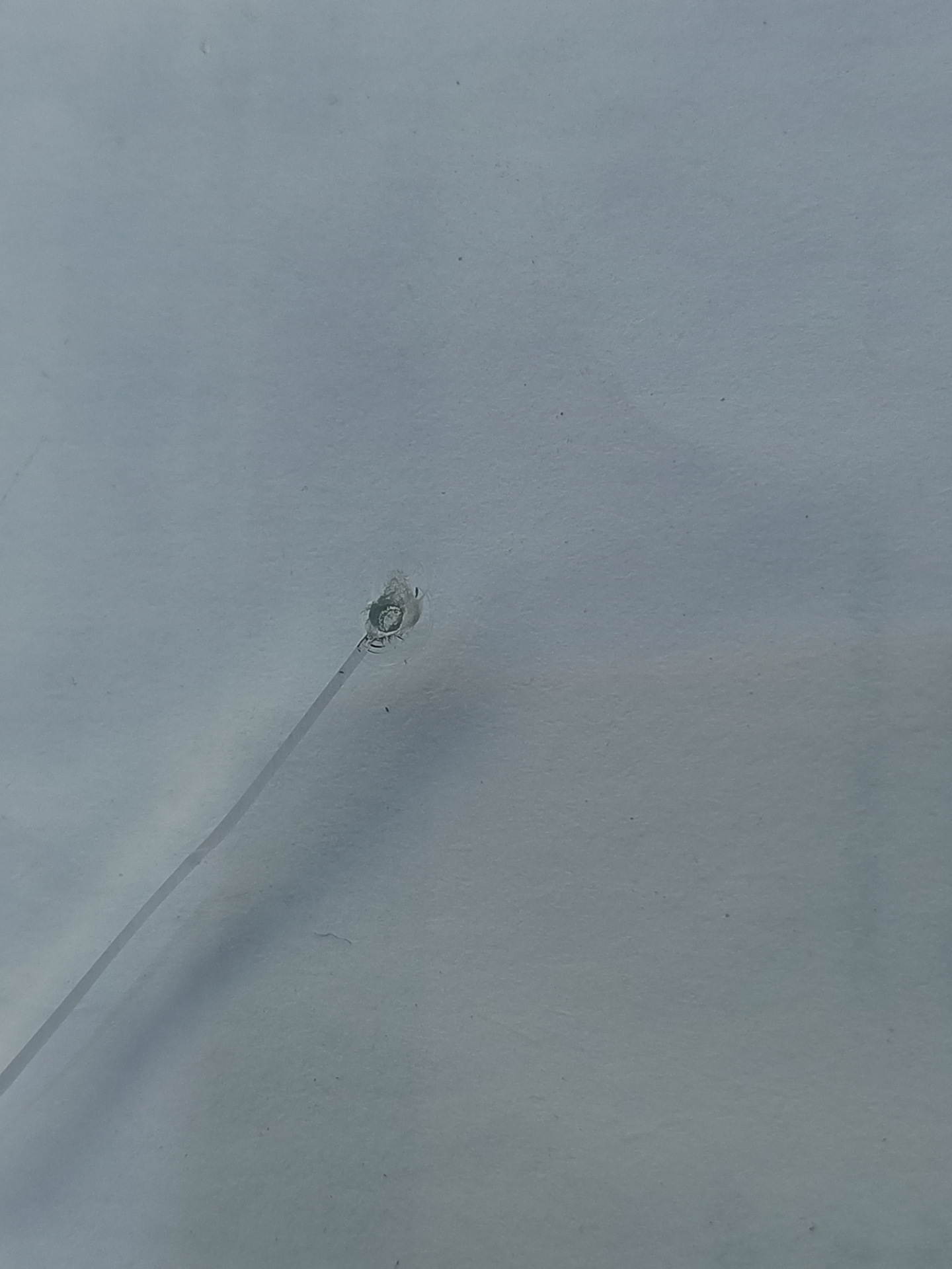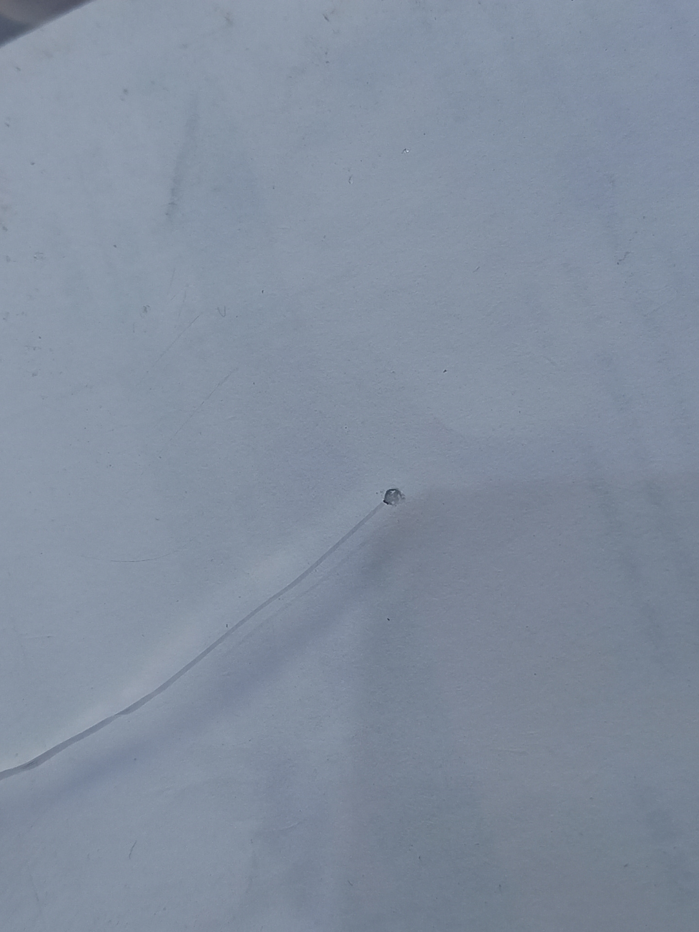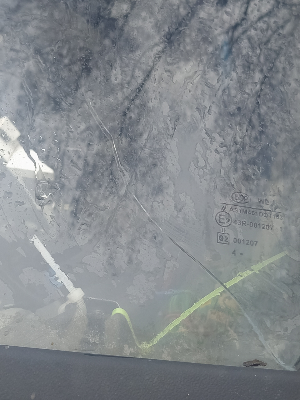 Всем привет! Ситуевина уже месячной давности. Всё забываю горем поделиться. В общем ехал с работы ночью, краем глаза заметил полоску на стекле. Про себя подумал "хоть бы травинка или нитка". А нет, чуда не произошло. На утро зафиксировал масштаб бедствия.