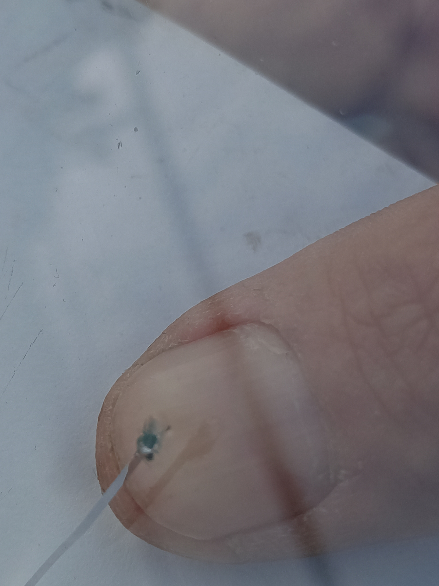 Засверлил край трещины. Но с опозданием, трещина немного подросла. Заказал на озоне ремкомплект для стекл со сверлом. Сверло оказалось отличным, клеем пользоваться не стал т.к. рабочая температура от 10°С, а на улице было около 3-4.