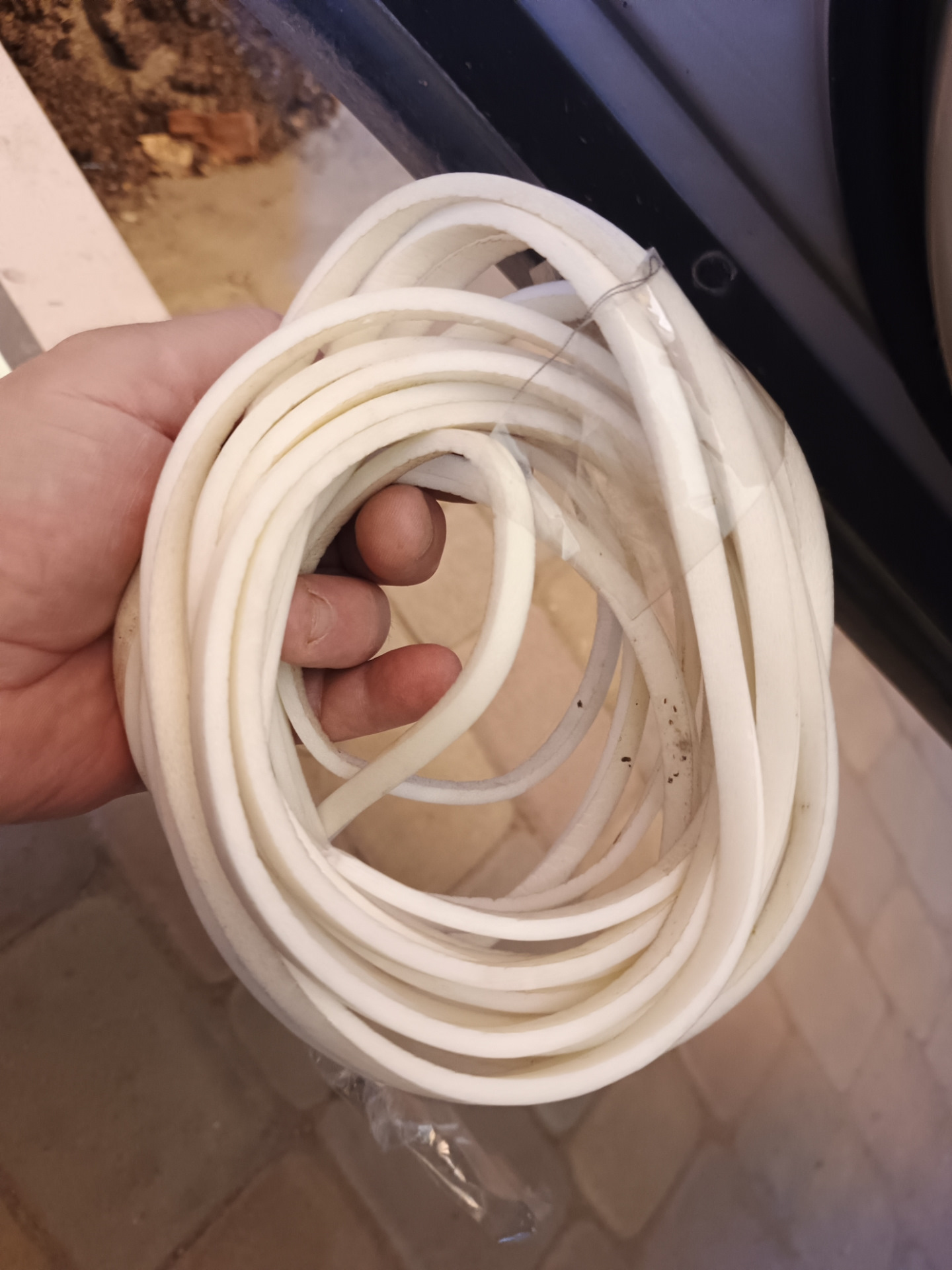 Так как в запасе этой хрени у меня куча, я её решил применить и запихнул шнур для уплотнение швов сэндвич панелей для промышленных холодильных камер в резинки дверей Кеши, протаскивал тонкой проволокой . Вышло плотненько.