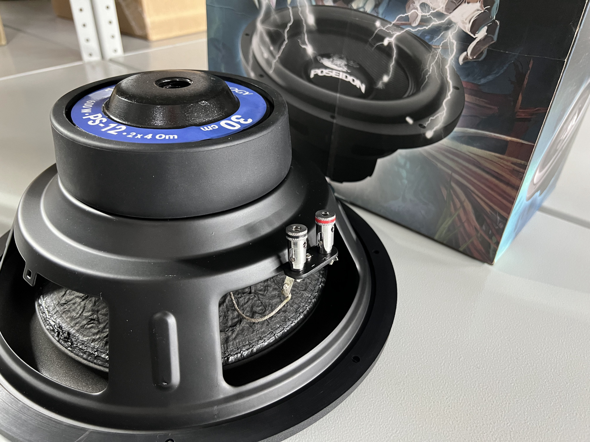 А сердце системы — 12-дюймовый PS-12 Poseidon. Взял именно его, потому что хотелось именно количества и качества баса, а не просто его наличия. Динамик с двойной катушкой по 4 Ома, что даёт гибкость в подключении. Решил запараллелить катушки, получив нагрузку в 2 Ома для усилителя. Номиналка у них 350 Вт RMS, а мой моноблок в таком режиме отдаёт 700 — идеальный тандем мощности с запасом.