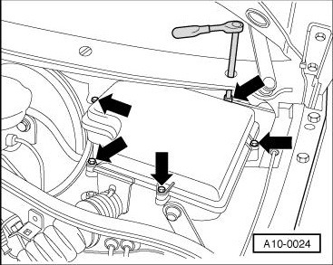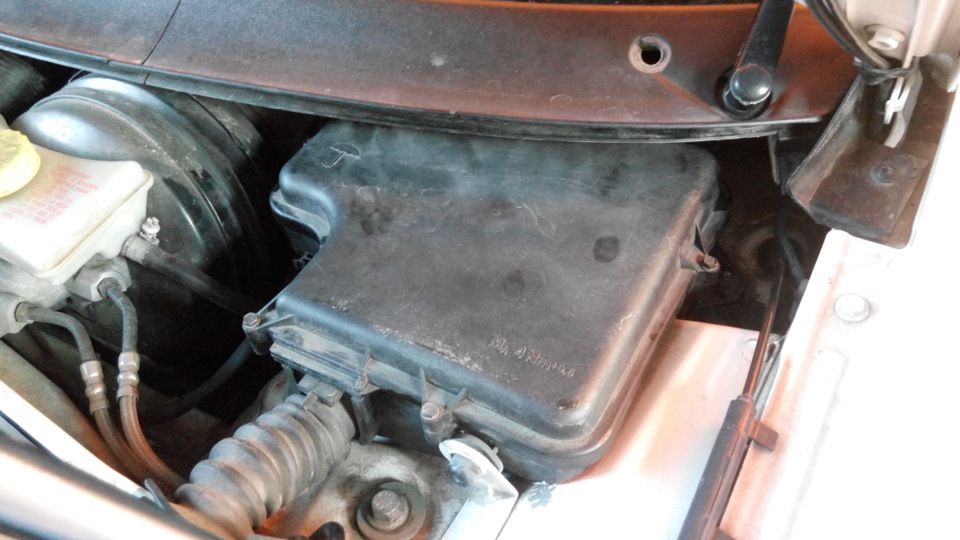 — Видим под крышкой блестящую металлическую коробочку, это ЭБУ, его надо снять. Отстегиваем скобу (там специальный язычок под отвертку), дальше можно его отсоеденить на разъёмах и убрать в сторонку, но я его не снимал, а просто отодвинул в сторону.
