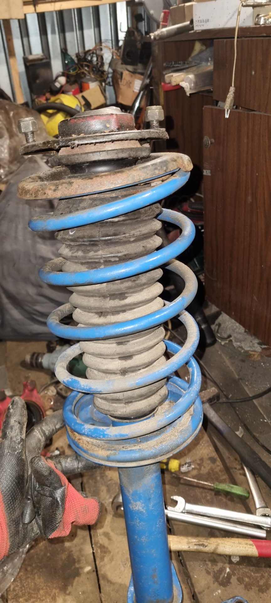 Успел только передние стойки поменять, снял кастомные-> поставил с ИЖпрезы с проставками +4см.