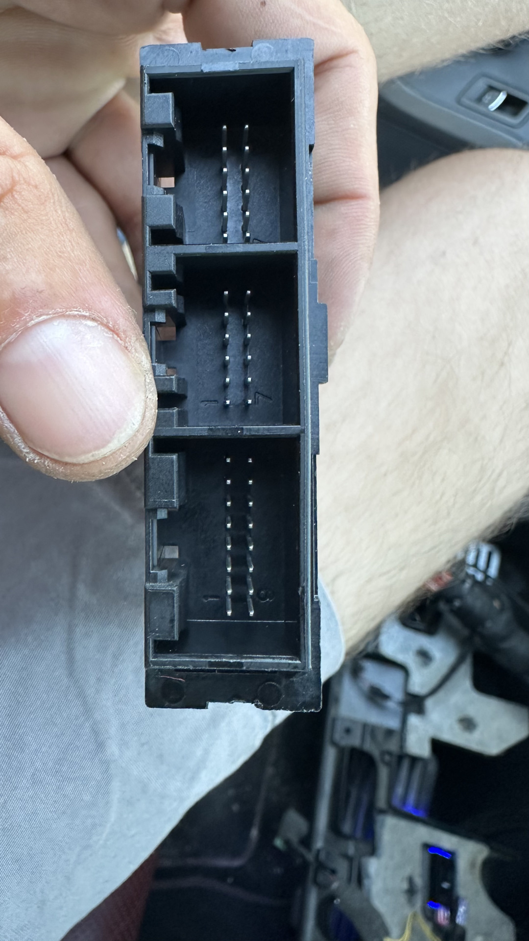 Распиновочки блока комфорта нет? Она у нас как на фл. Соседний блок с парктрониками условно. Контакт датчика компрессора кондея глючит в фишке. Забыл какой из них и в какой фишке. Помню сервотроник там же рядом. Но картинку теперь не найду.