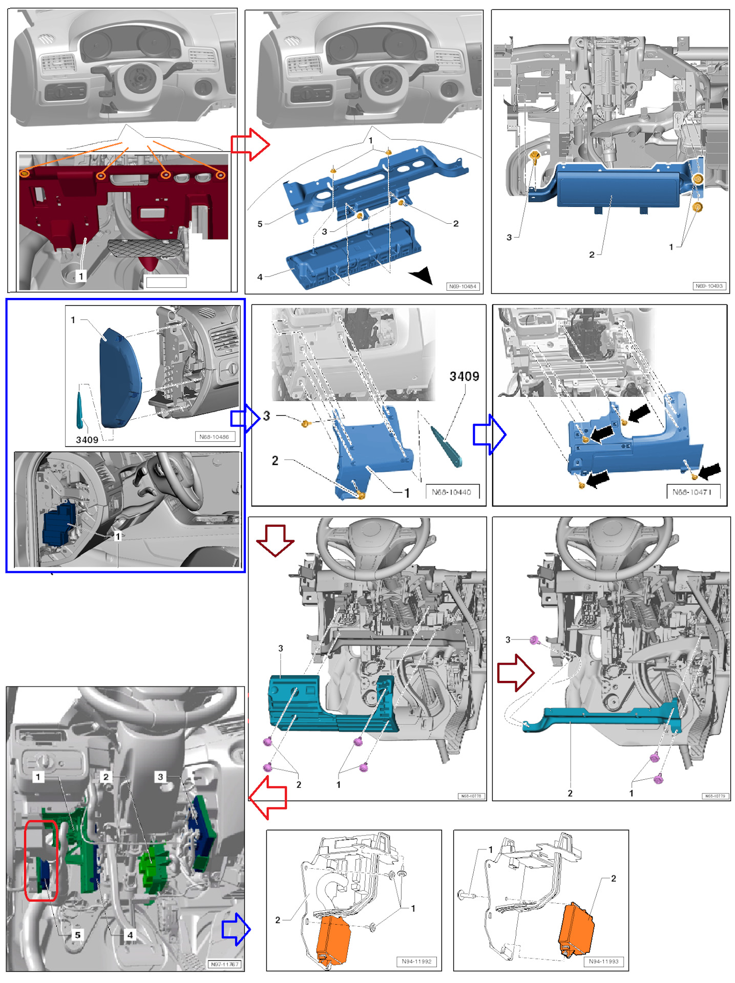 Оставлю схемы доступа к блоку управления парктрониками на VW Touareg-2 (7P).