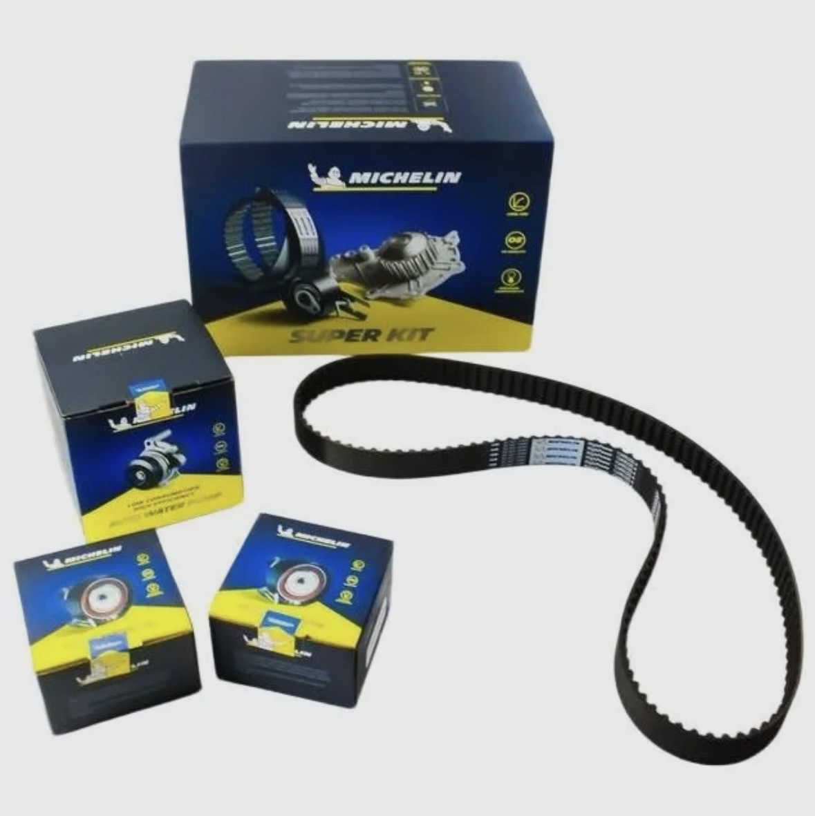 Там был ремень ГРМ (на фото 2, вроде как мишлен, но как сказал мастер ему пришлось самому метку вычерчивать по другому ремню, так как на самом ремне этой риски якобы не было), 2 ролика — натяжной и обводной — фирмы NTY (фото 2) и красивая помпа (на фото 7).