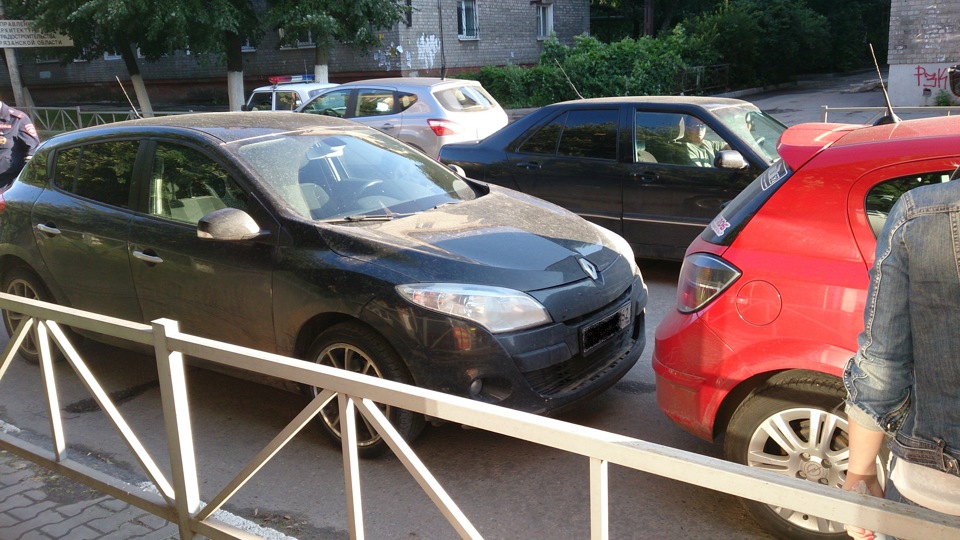 Выхожу и вижу картину — торчит у меня в заднем бампере Рено Меган, за рулем прекрасный пол.