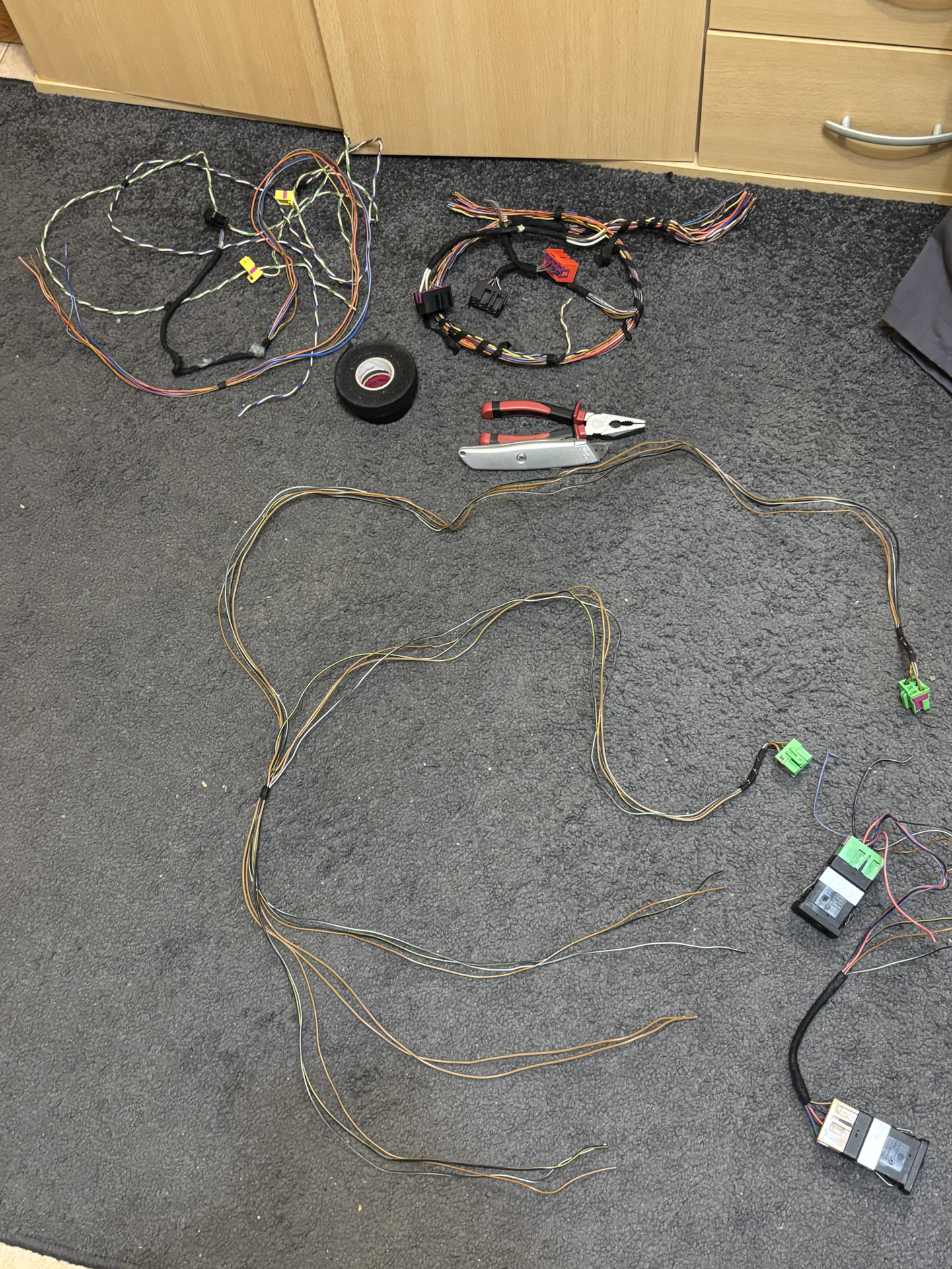 По приезду домой начал делать проводку, по скольку проводка была отрезана не целиком(часть осталась в торпеде) занялся её скрещиванием.