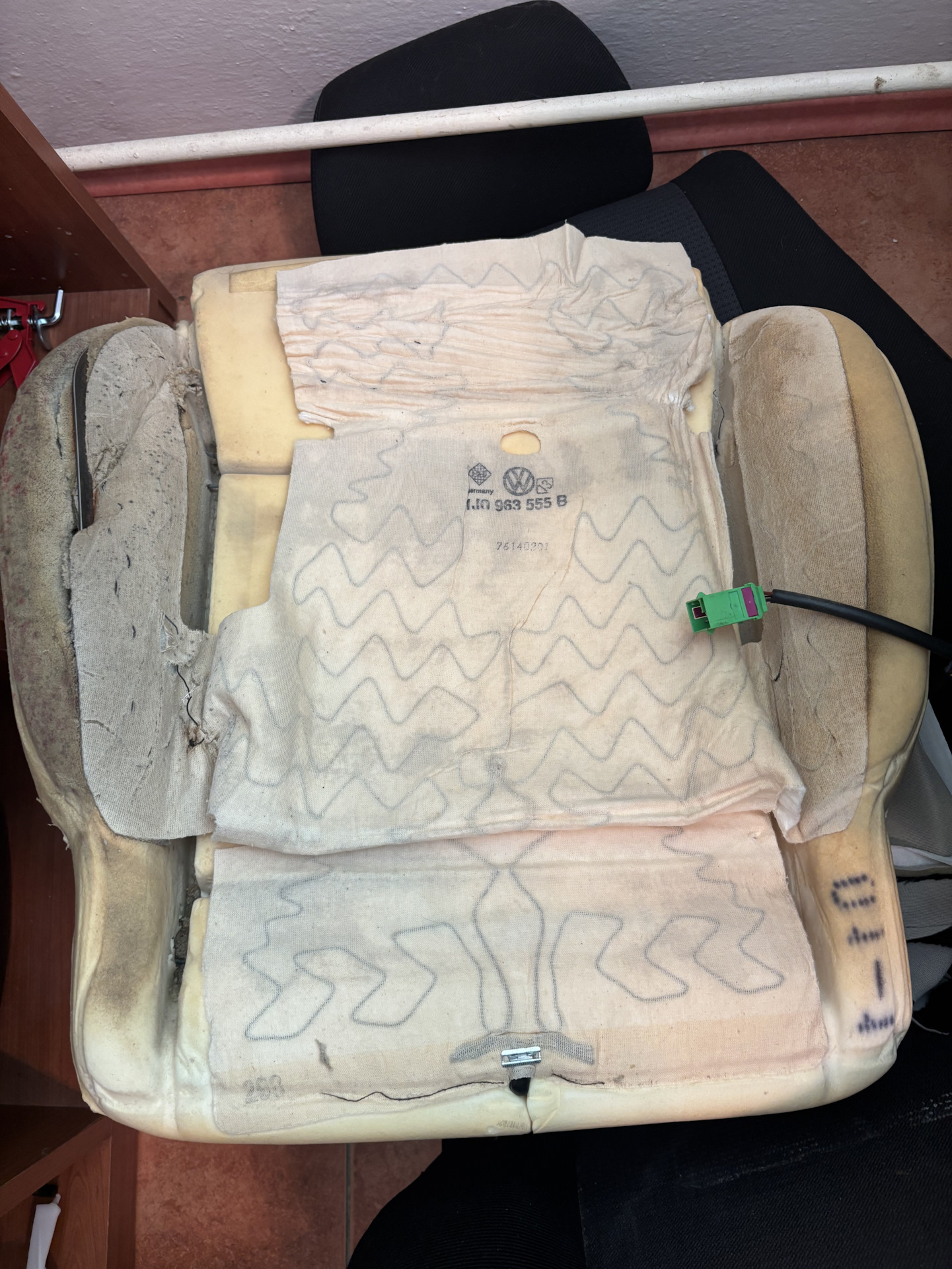 Прозвонив маты понял что поджопники не звонятся на обеих сидениях. Разобрал сидение и прогоревшее место сразу кинулось в глаза