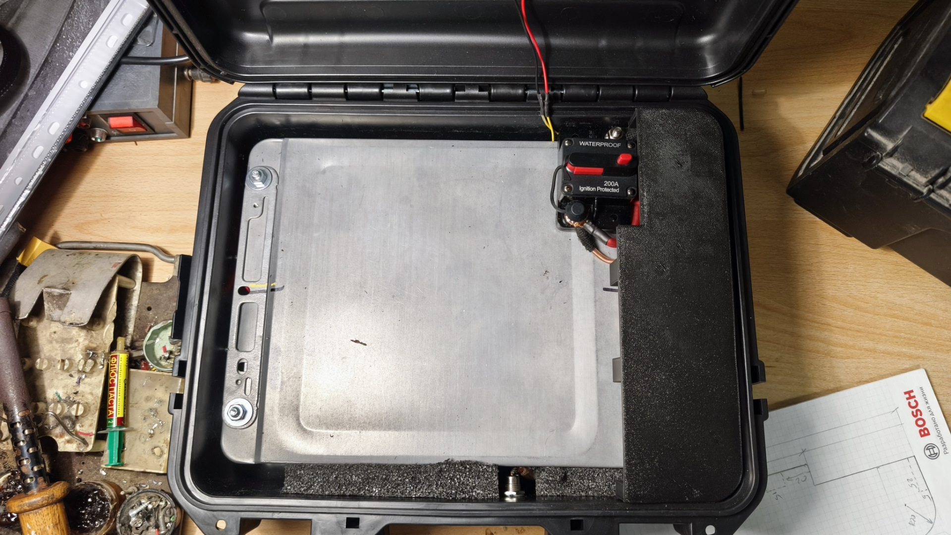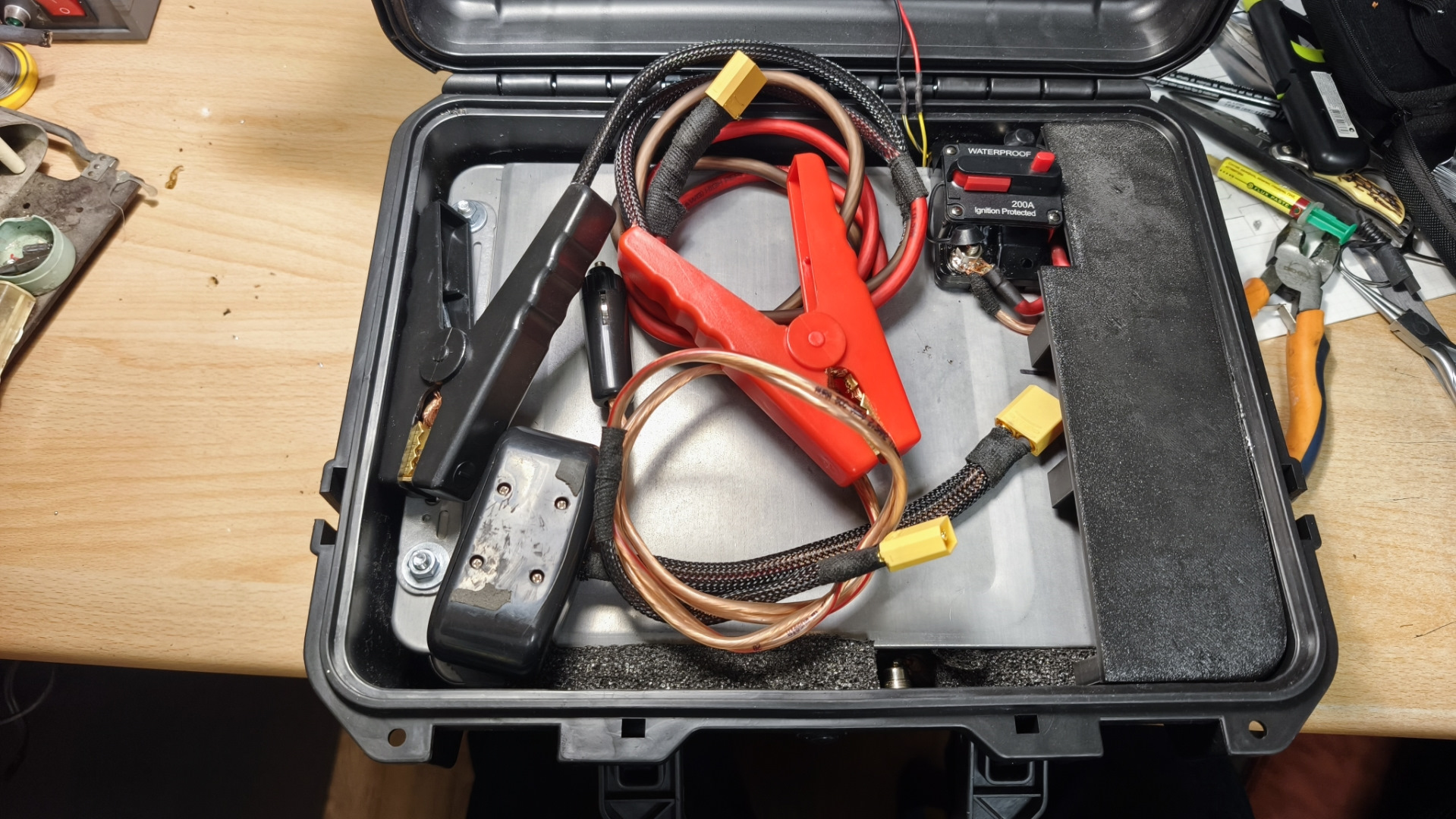 Чемодан серъезный получился. По опыту скажу эти крокодилы полная хрень. Пластик на морозе рассыпается. Ну и разъем для крокодилов посерьёзнее бы. Мой бустер на консервах уже почти 2 года в постоянной эксплуатации. До сих пор ячейки живые. Пару раз их в ноль разряжали и ничего. А крокодилы лучше взять такие за 1000р