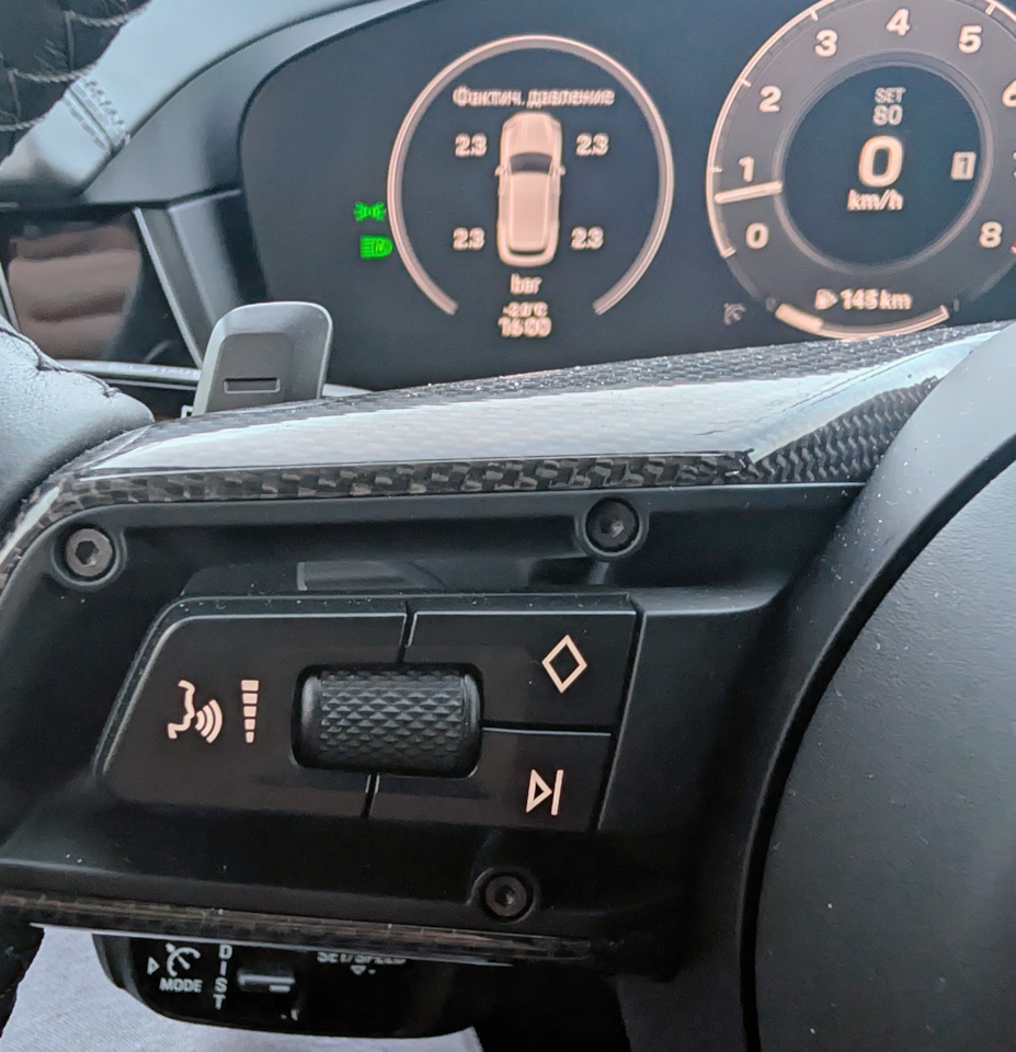 Несмотря на то, что в Порше давно додумались вывести кнопку свободного назначения на руль, где у меня стоит переключение песни на следующую, они так и не вывели кнопки под смены треков, что мне совершенно непонятно. В моем 911 были хотя бы физические кнопки на торпеде, где можно было перелистнуть вперед/назад, а тут и вовсе ничего! Я, как человек с большой медиатекой, вечно мучаюсь, когда приходится вслепую переключать треки, ведь они на проекции или в районе спидометра тоже не отображаются.