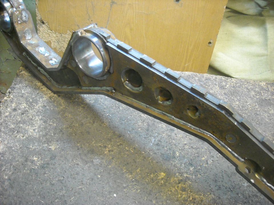 Конкретнее: все элементы сварены короткими стяжками в углы полок. Так можно варить забор на даче, но не рычаг! При боковом воздействии полка съебурится гармошкой и оторвёт все эти прихватки. Устриц мы ели в достатке. По этому, чтобы сварная конструкция не разошлась "по швам" нужно использовать технологию "шип-паз", что при растворении шипов сваркой в пазах делает деталь практически монолитной. Плюс к этому необходимы накладки по всей длине рычага, чтобы он пружинил а не просто гнулся. При такой технологии получается сварной рычаг, сообразный по прочности штатному. Считали в "АПС" Всё, что сделано иными способами- фикция! Но если соблюдать эту технологию, то цена работ по сборке, резке и гибке 8ми деталей будет далеко не 5 рублей, чтобы продать за 10!:) Более того, настругать клюшек в большом количестве просто не удастся. т.к. только сборка одной клюшки займёт несколько часов и по этому заработать на массовости просто невозможно!