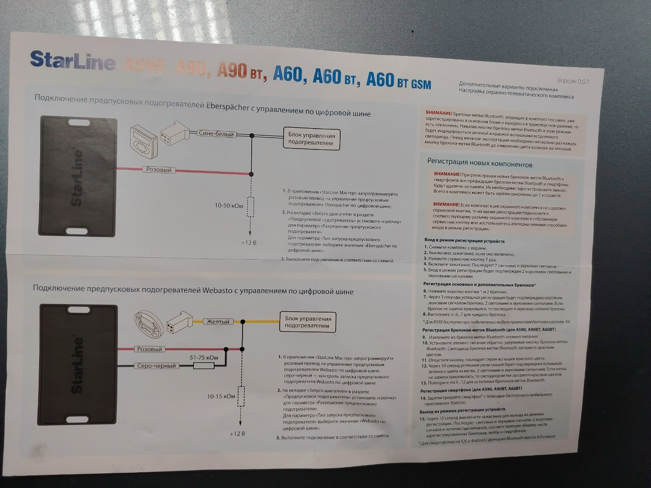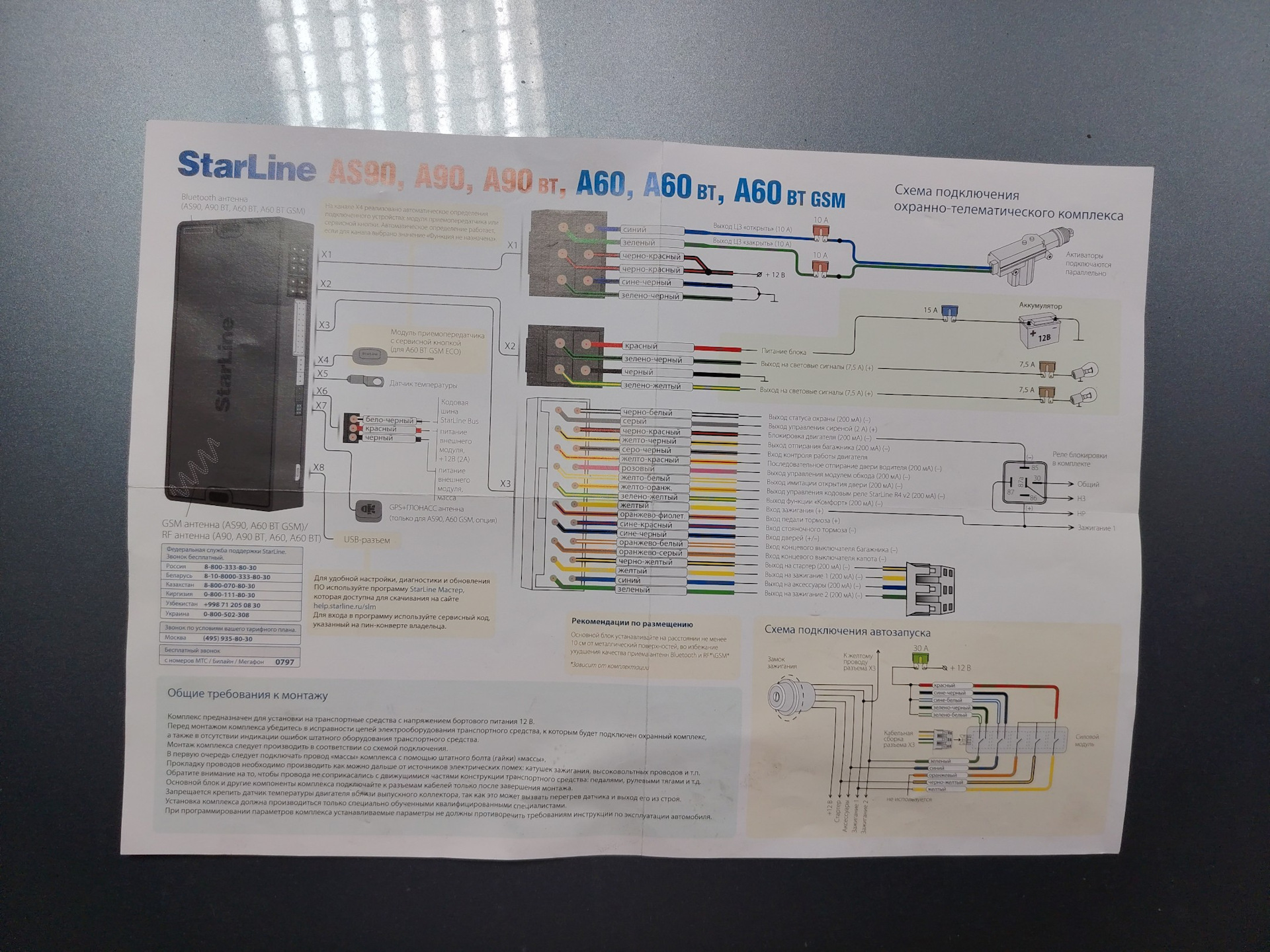 Думаю, многие помнят книжечки раньше шли к сигналкам, где было всё доходчиво описано и приведены схемы подключения, например, к тем или иным форматам управления (плюсами, минусами)? В комплекте с новым старлайнам шёл такой вот красивучий "ватман", просто загляденье, большой, блестит, цветной и бесполезный!