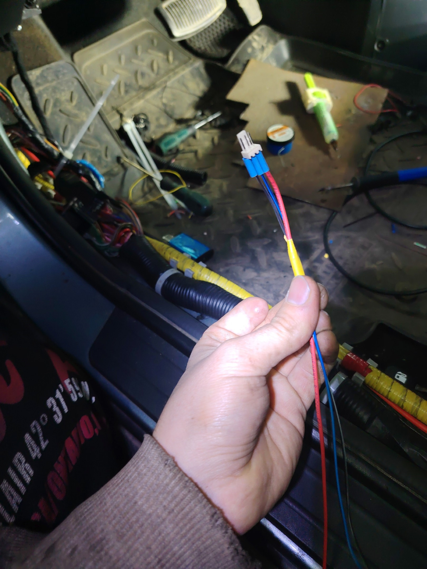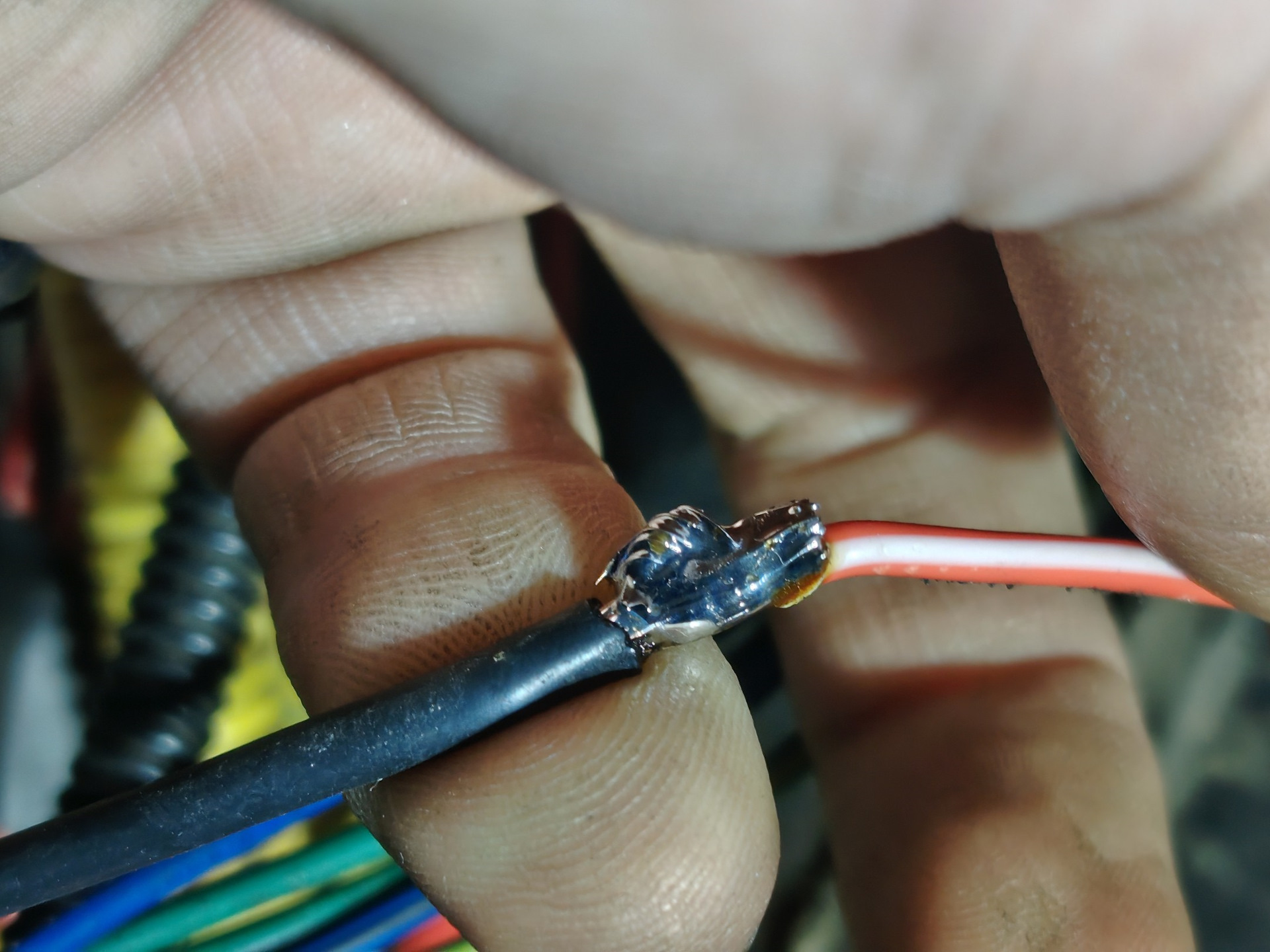 Злополучная спайка СИЛОВЫХ ПРОВОДОВ СТАРЛАЙНА и каких-то узкоглазых проводов замка зажигания: