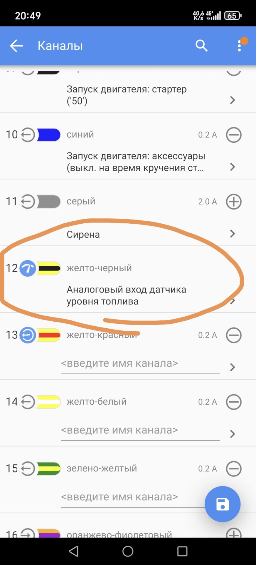 5.1 Уровень топлива приложение показывает только 7%…10% (не соответствует действительности) и только на заглушенной машине, и то не всегда. Подключено к выводу номер "45" по схеме выше. При заведенной уровень топлива пропадает, если на него кликнуть, приложение пишет "Зажигание выключено". При этом ниже написано "двигатель запущен", гениально! Из всех настроек, что я делал для работы, это выбрал вывод как "аналоговый вход датчика уровня топлива", других настроек не нашёл, информации по работе этого режима вывода так же не нашёл (мммм, документация!)