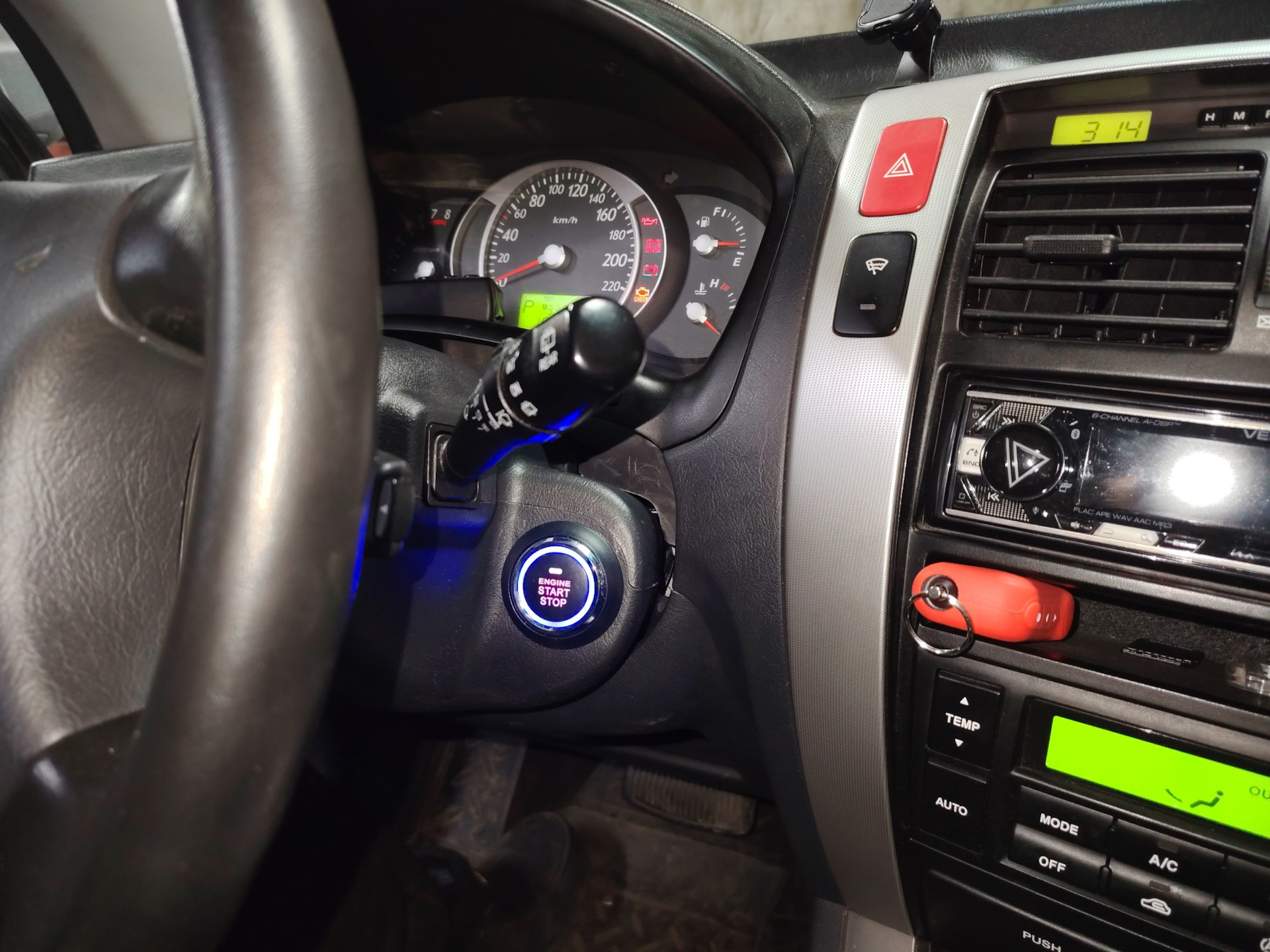 Старт-стоп у меня встал отлично, сразу за ним родной замок. То есть когда весь этот электронный мусор накроется медным тазом, я смогу буквально вырвать кнопку (она с обратной стороны крепится на нечто вроде пластинчатой пружины) и всунуть ключ (хоть и чуть глубже).
