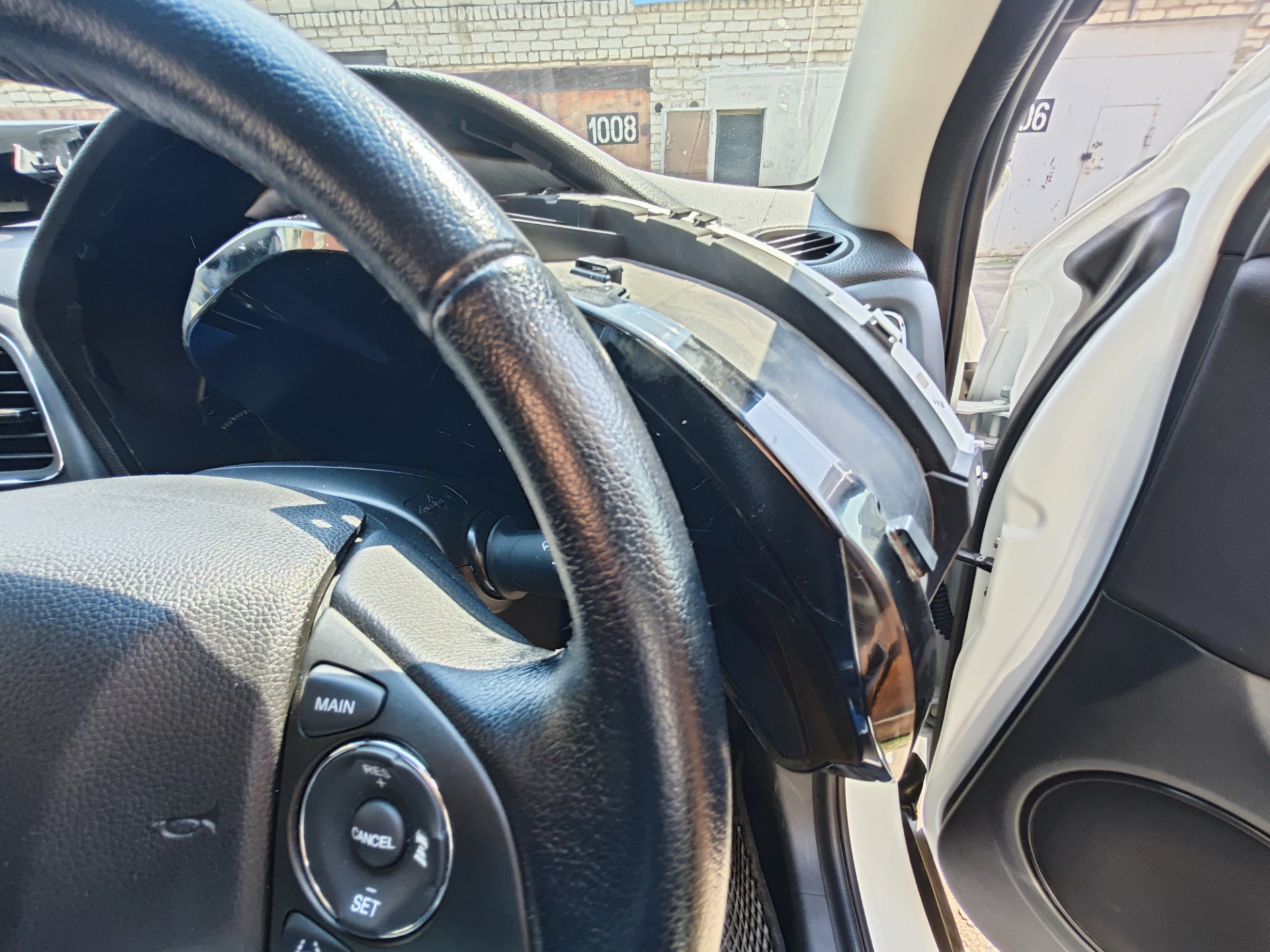 🔹 снимаем клемму АКБ, опускаем руль и разъёмы переключателя поворотов и омывателя вниз, чтобы в дальнейшем приборка вышла без проблем