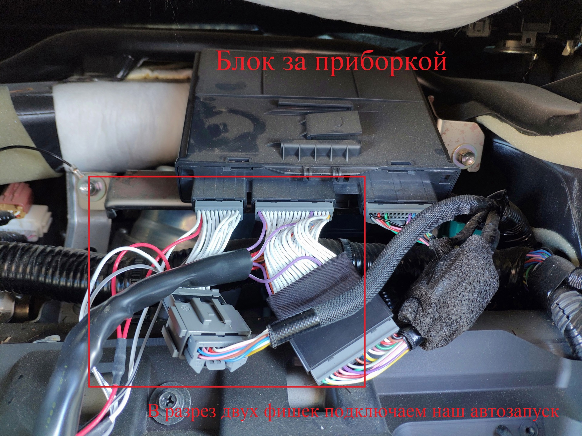 🔹 снимаем два разъёма (левый и центральный) и подключаем их через автозапуск