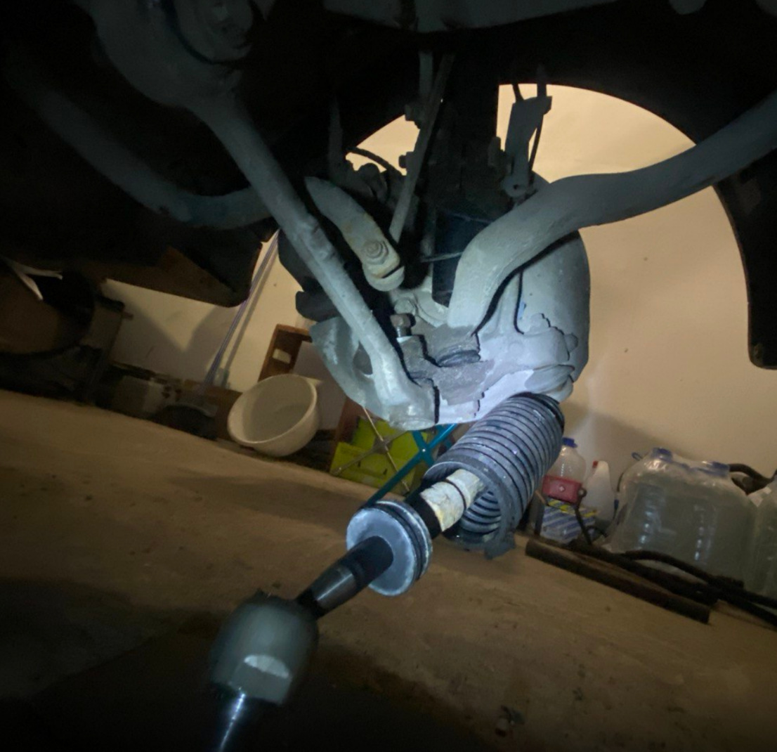 Сняли пыльник и рожковым ключом на 32 открутили тяги с рейки, заодно удобно проверить шаровые рулевых тяг. Если шаровая рабочая, она должна держать тягу чуть ли не горизонтально, если тяга падает вниз тут уж сорян.