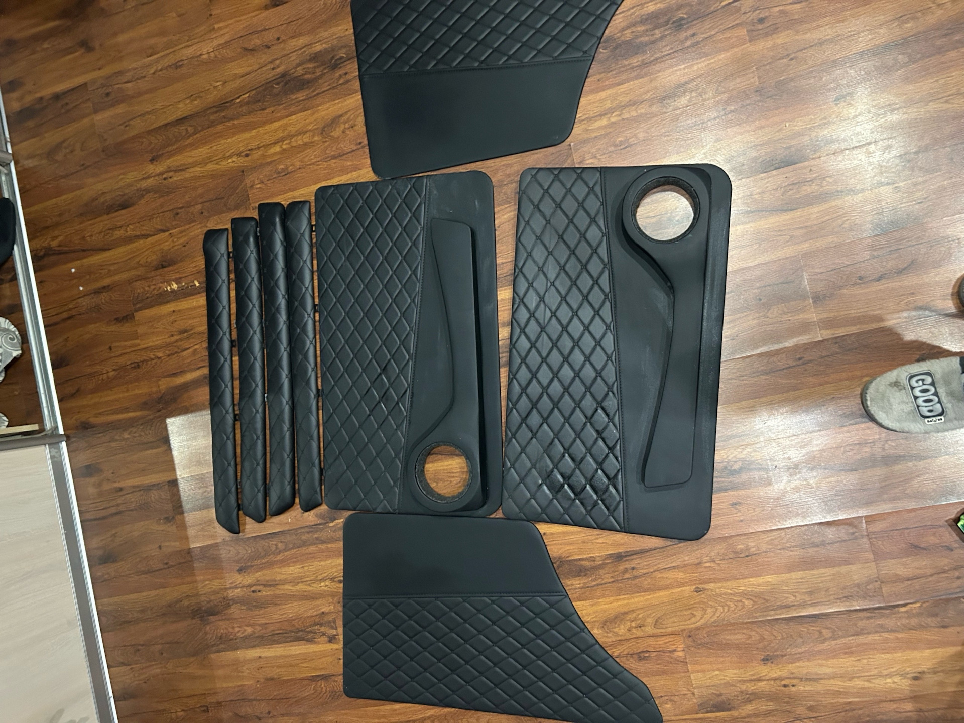 Жена на новый год подарила комплект дверных карт с батонами и подиумами, на праздниках поставил, заодно проклеил двери фольгоизолом чтобы на обшивки вода не текла и из дверей не дуло. Стало прям гораздо лучше. Ну и салон смотрится опрятнее.