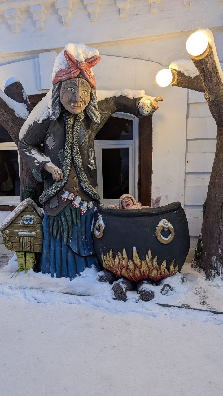 Пожрать в городе было вообще негде. Те малочисленные столовки, что мы нашли, были закрыты либо на спецобслуживание, либо на Рождество. Поэтому питались либо пирожками, либо готовили сами в домике. Устюг был украшен плохо, народу и машин мало. Зато дороги не посыпаны совсем, красивые зимние.